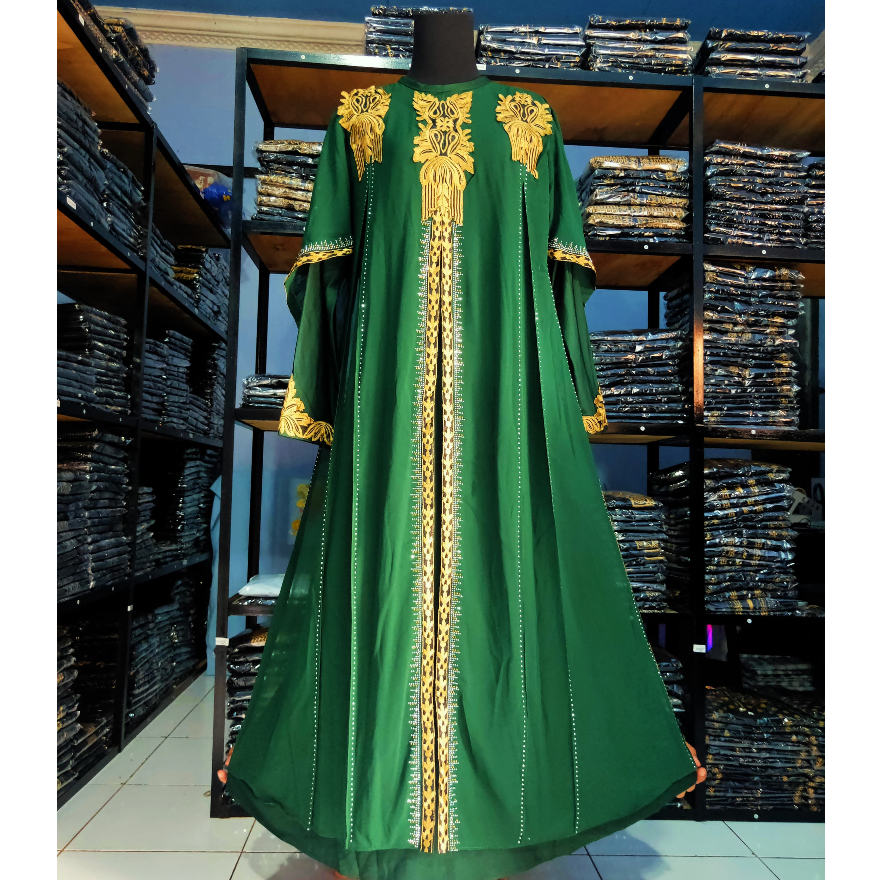 Gamis Abaya Turkey Jotol Bahan Jersey Mix Ceruty Bordir Baju Busana Maxi Dress Muslim Wanita Rose Hijau Tua