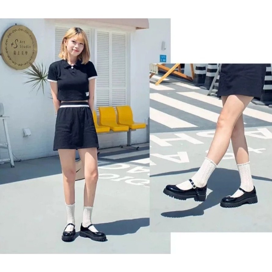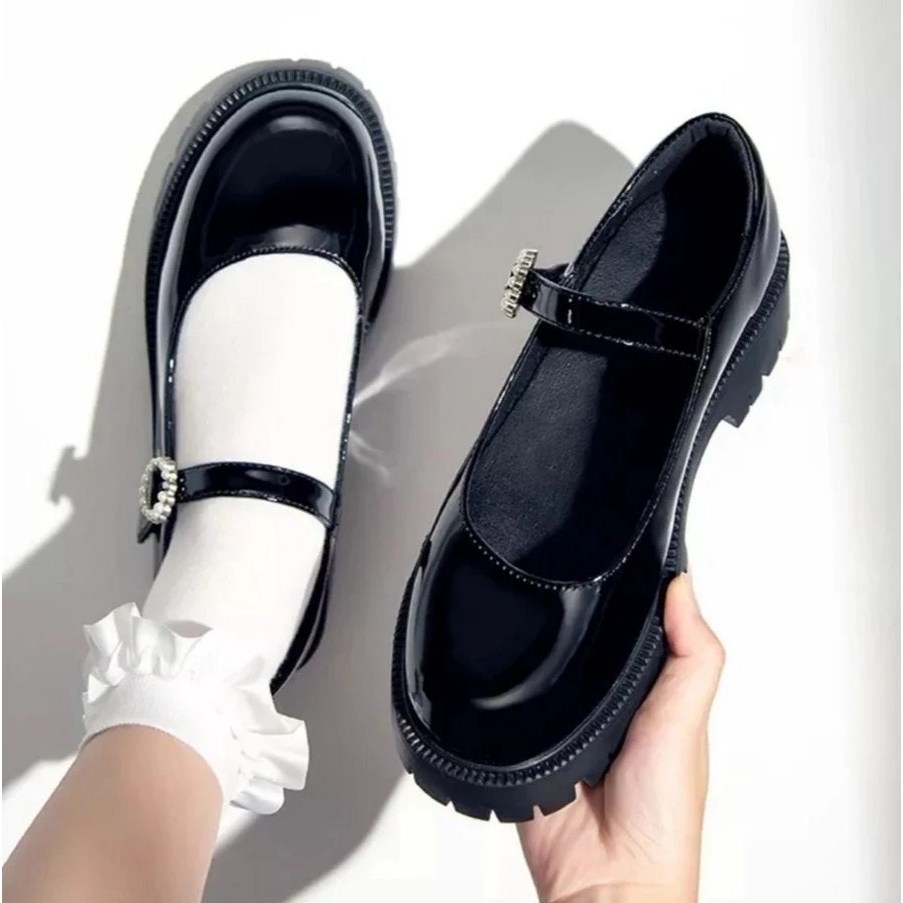MG SEPATU WANITA HITAM BLACK GLOSSY PREMIUM KOREAN STYLE DOCKMART PANTOFEL GESPER MUTIARA GESMUT OXFORD KEKINIAN SE