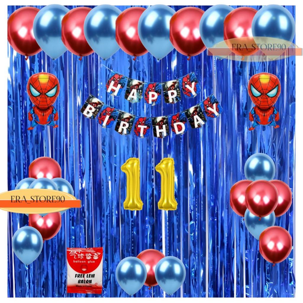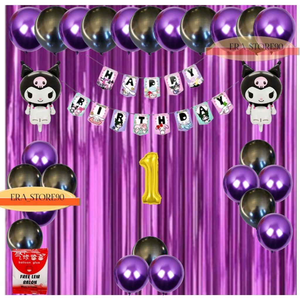 Set Dekorasi Pesta Ulang Tahun Anak Banner Happy Birthday Doraemon Kuromi Spiderman Capten Frozen