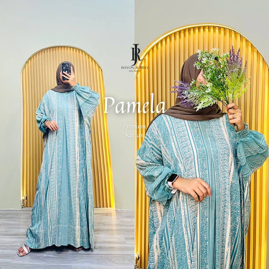 Home kaftan Motif Pamela Bahan Rayon Super Jumbo XXXL Baju Muslimah mewah Elegan Baju Pengajian