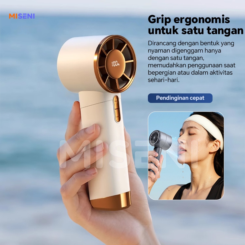 MISENI Model Baru 2025 Mini Kipas Strong Wind 100 Gigi Wind Angin Digital Display Kipas Genggam Metalik Turbin Berkecepatan Tinggi Portabel Yang kuat Speed Pendinginan seluruh tubuh