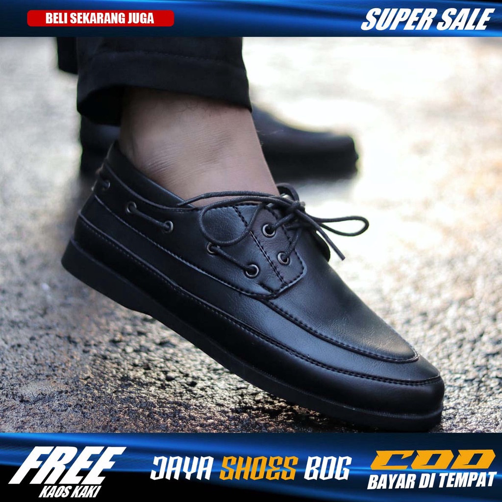 BORIS|Sepatu Formal Pantofel Pria Hitam Tali Kerja Kantor Kuliah Fashion Original Kulit Syintetik