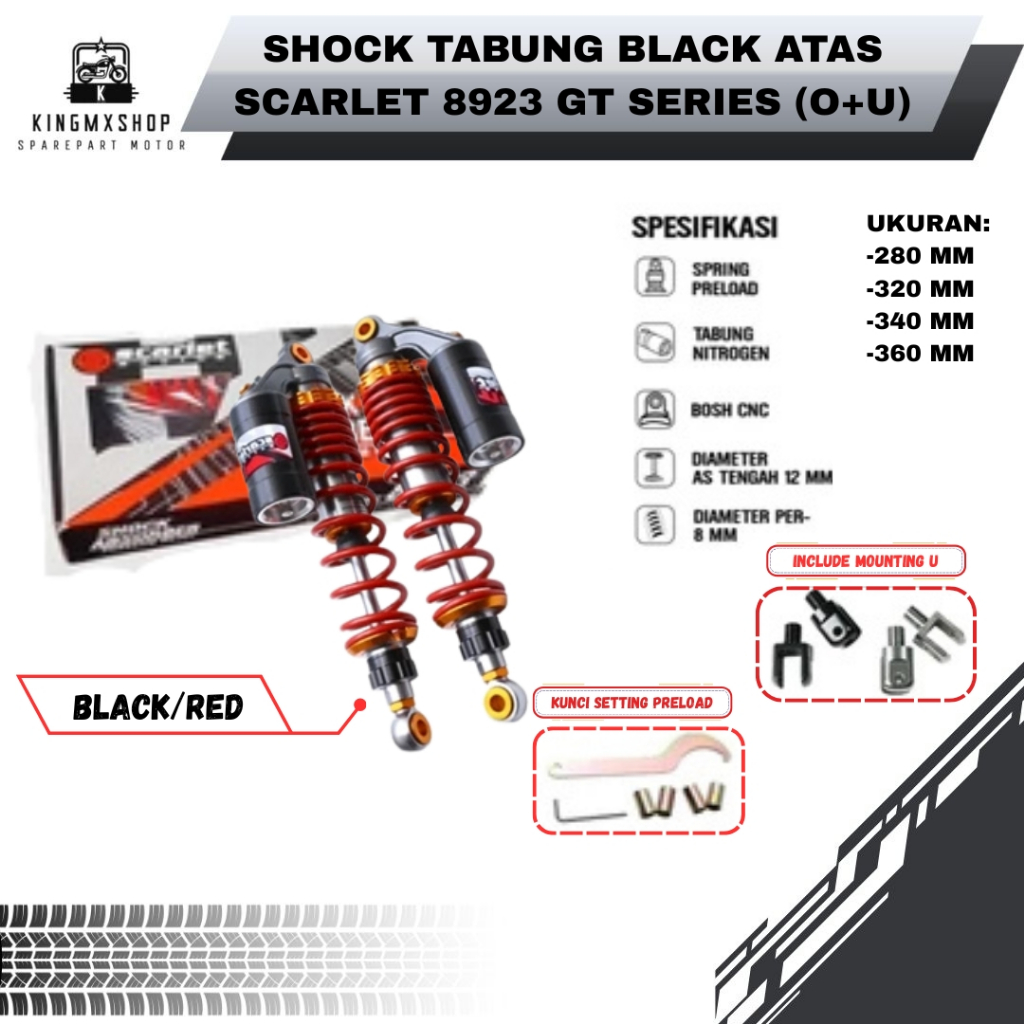Shock Absorber Scarlet 8923GT Series Tabung Atas Black Mounting U Uk 280 320 340 360 mm