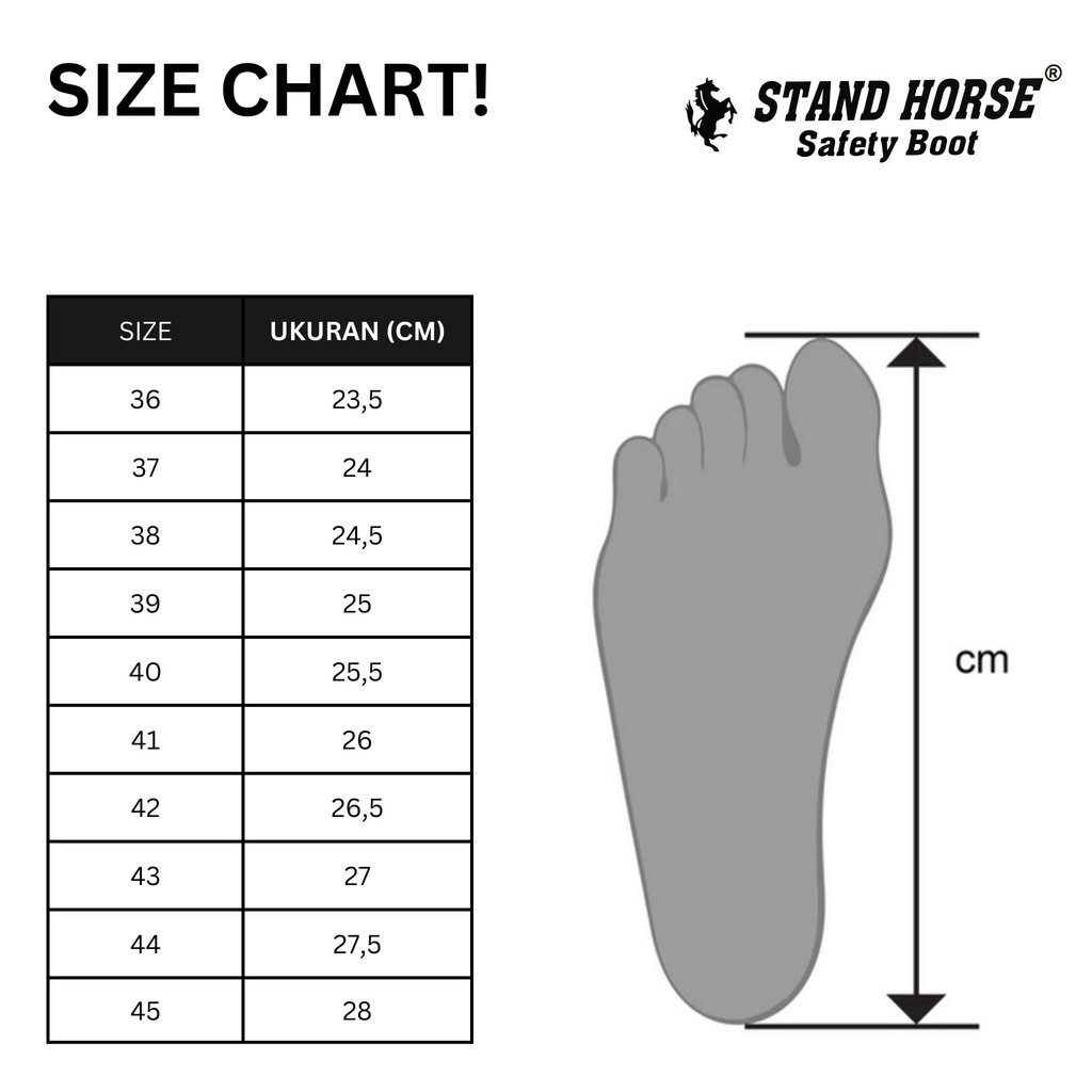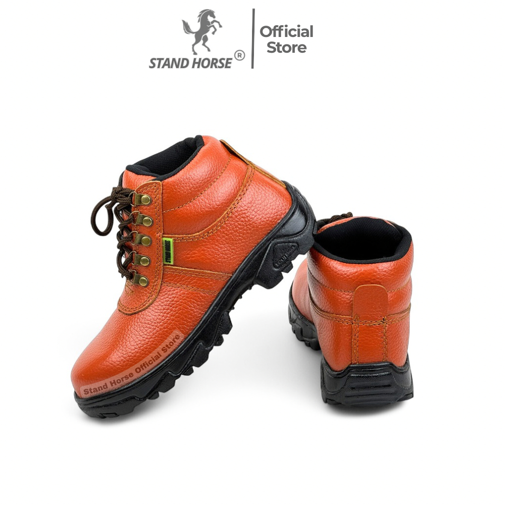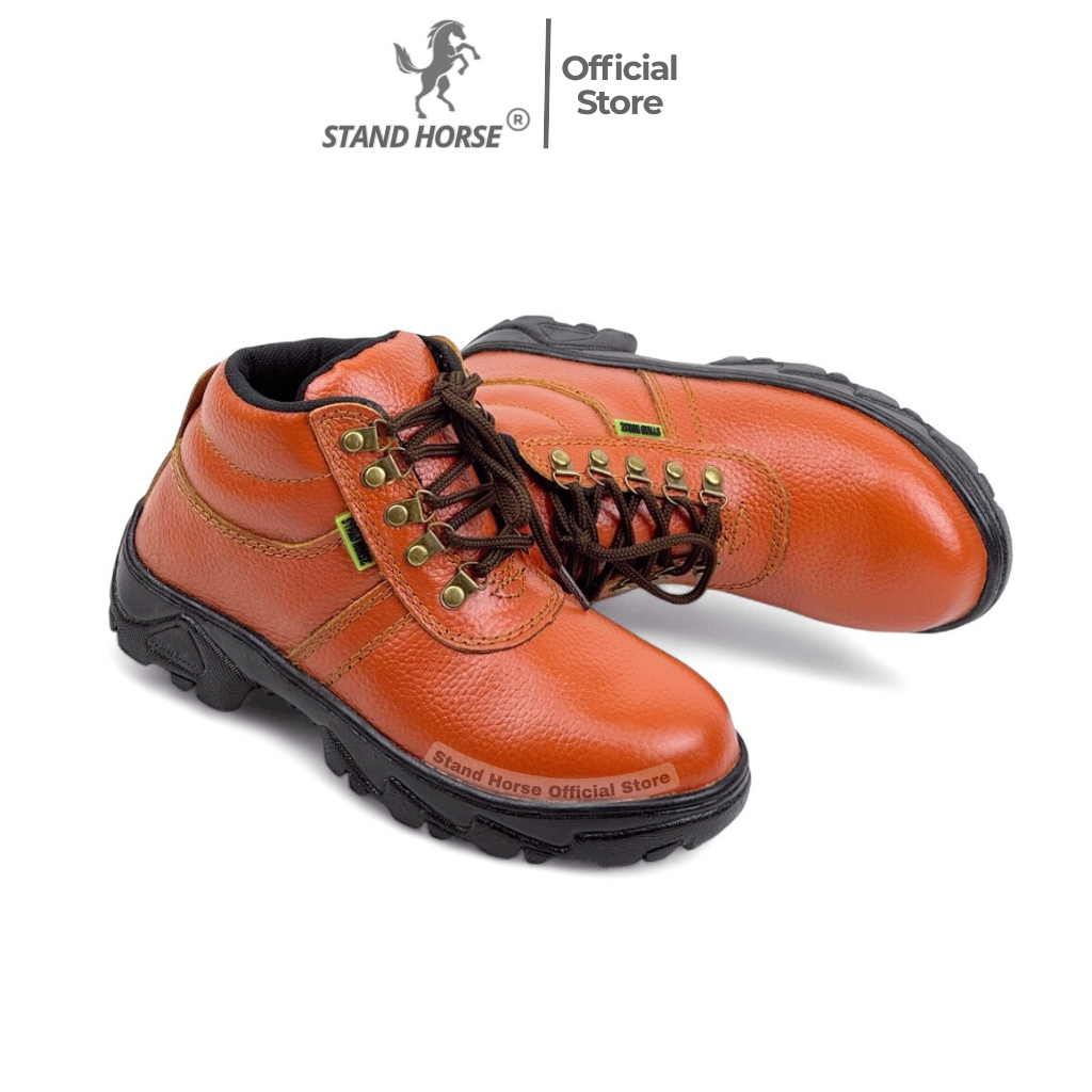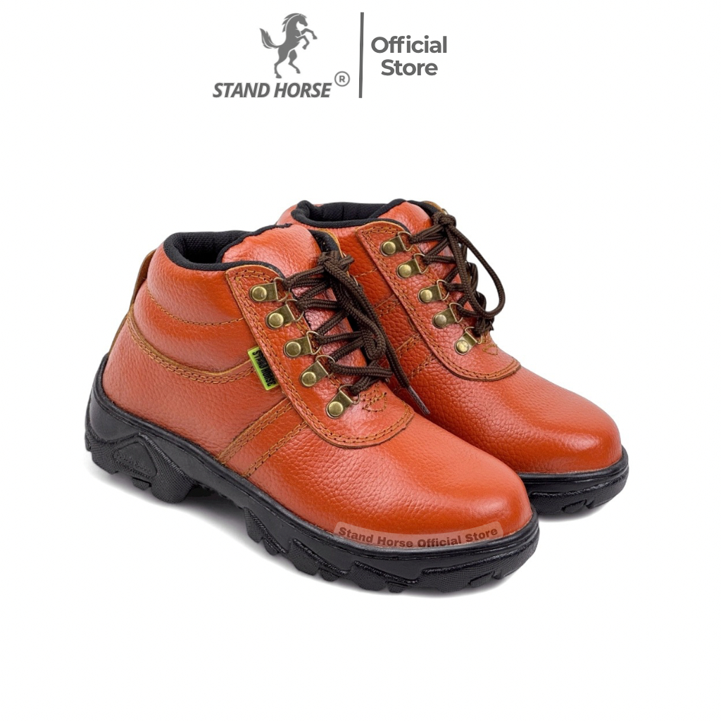 Sepatu Safety Pria Boot Tali Ujung Besi STAND HORSE 804B Kulit Asli Unisex Size 36-45