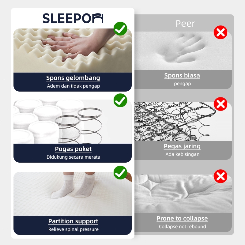 Sleepon Kasur Snow Foam Sensasi Dingin | Springbde 20/30cm Empuk Anti Lembab | Untuk Lantai Langsung | Free Bantal
