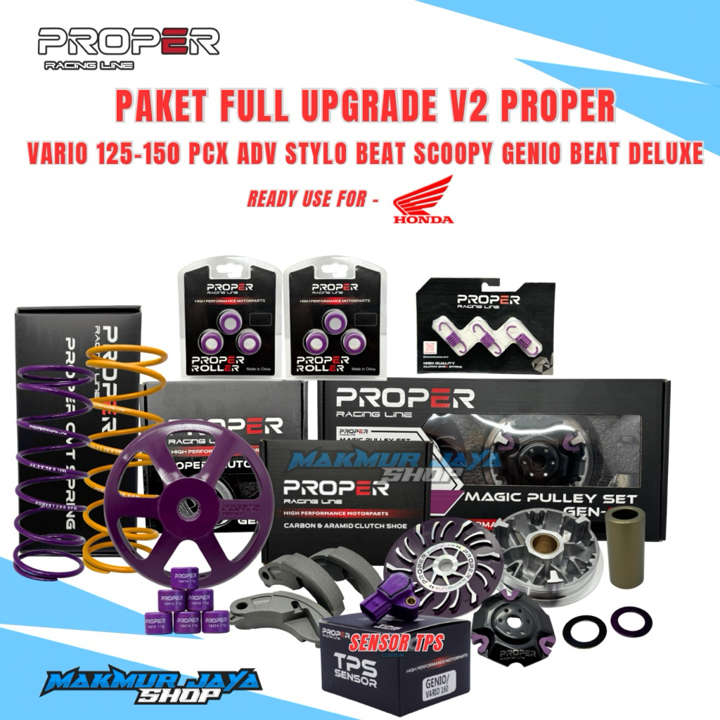 PAKET FULL UPGRADE V2 CVT PROPER RACING LINE HONDA VARIO 125-160 PCX 150-160 ADV 150-160 BEAT FI BEAT NEW BEAT DELUXE SCOOPY FI SCOOPY NEW STYLO BEAT STREET