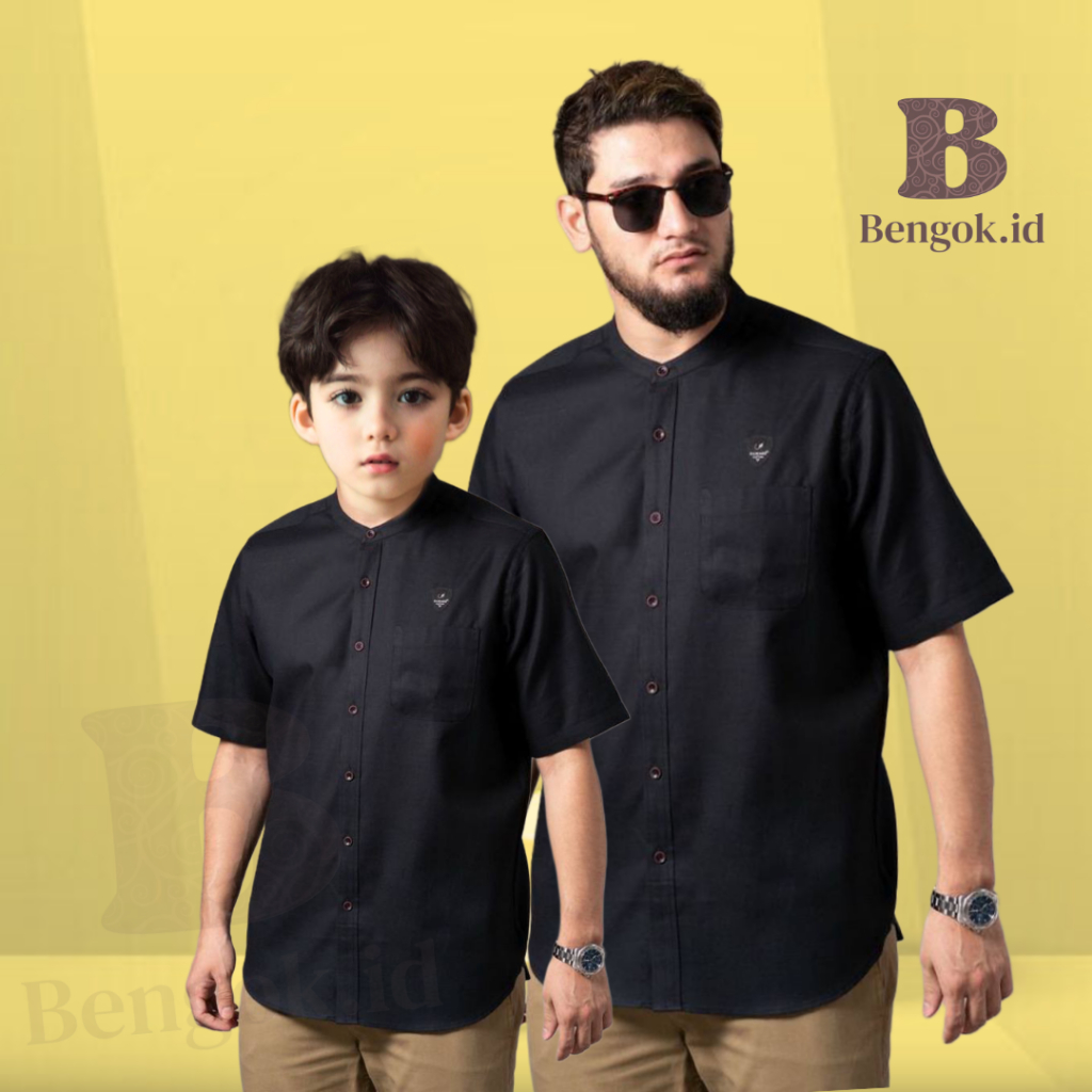 Baju Koko Lengan Pendek Dewasa dan anak Polos basic premium warna hitam / Koko Qurta Pakistan couple ayah dan anak warna hitam