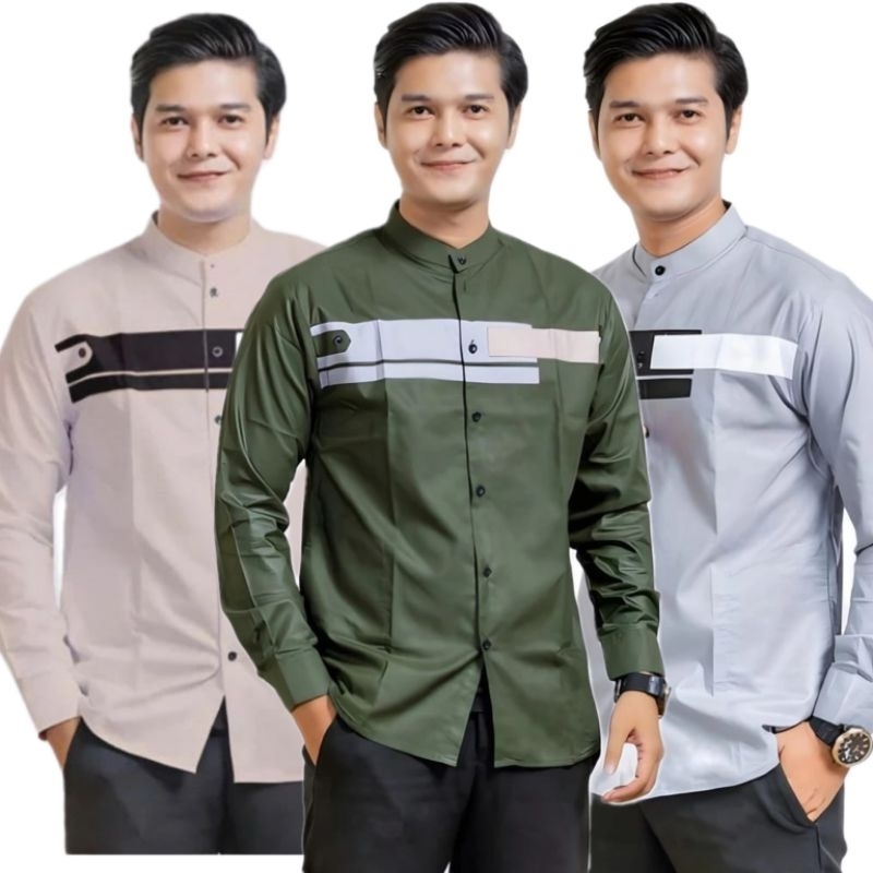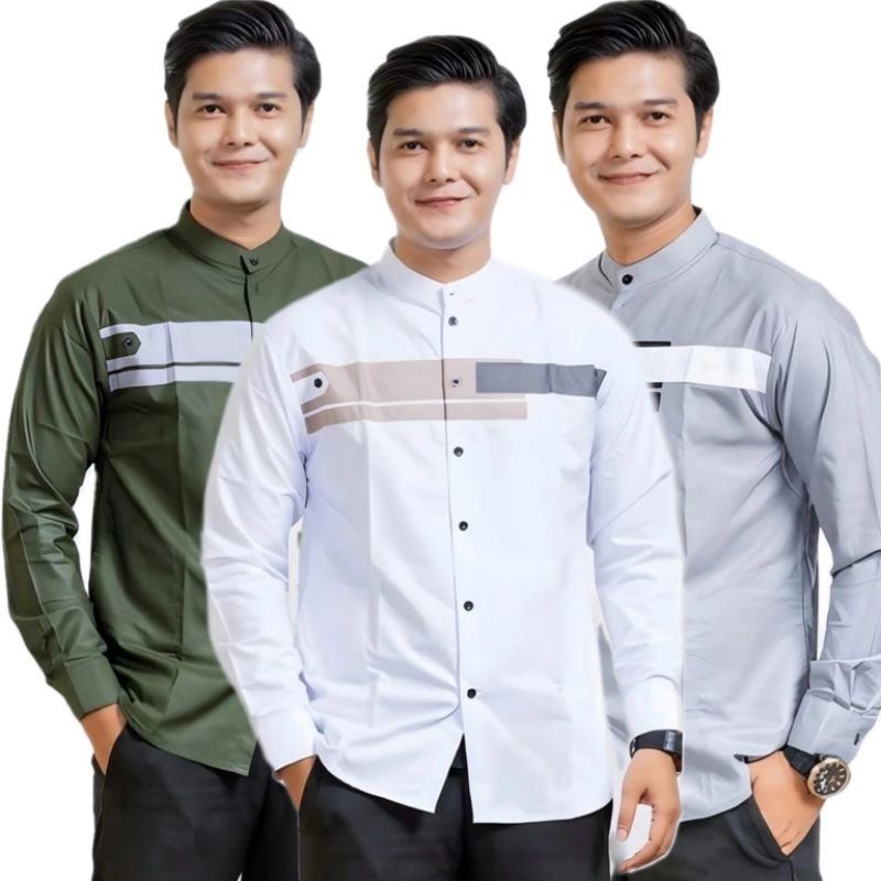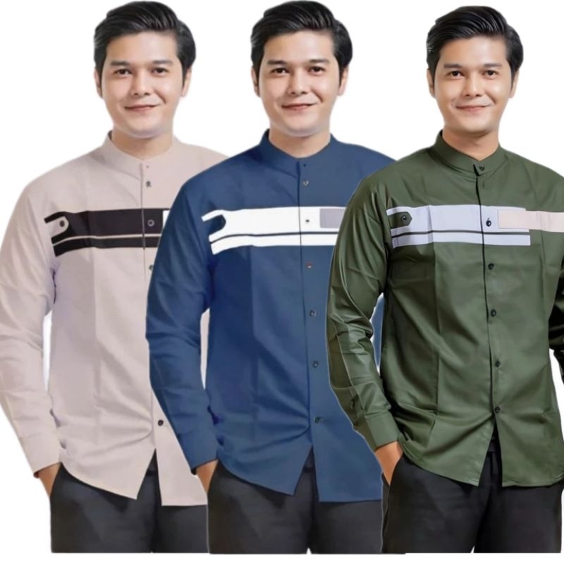 paket hemat 3 pcs baju koko pria lengan panjang motif yordan