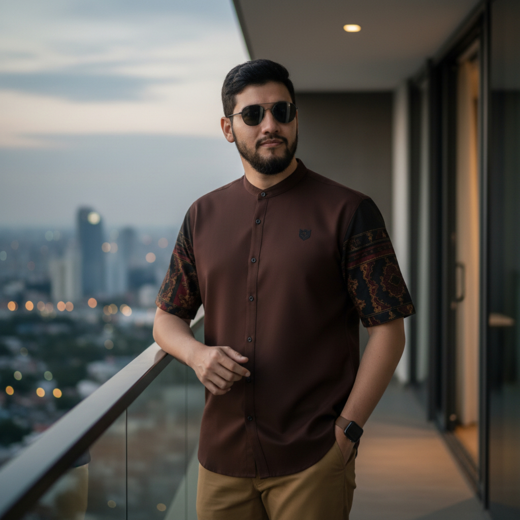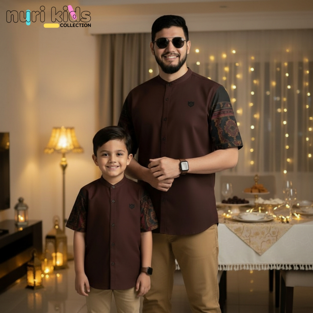 baju koko couple ayah dan anak warna mahogany lengan pendek baju koko dewasa baju koko anak