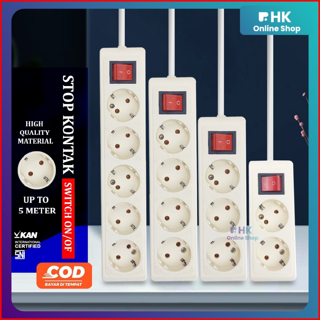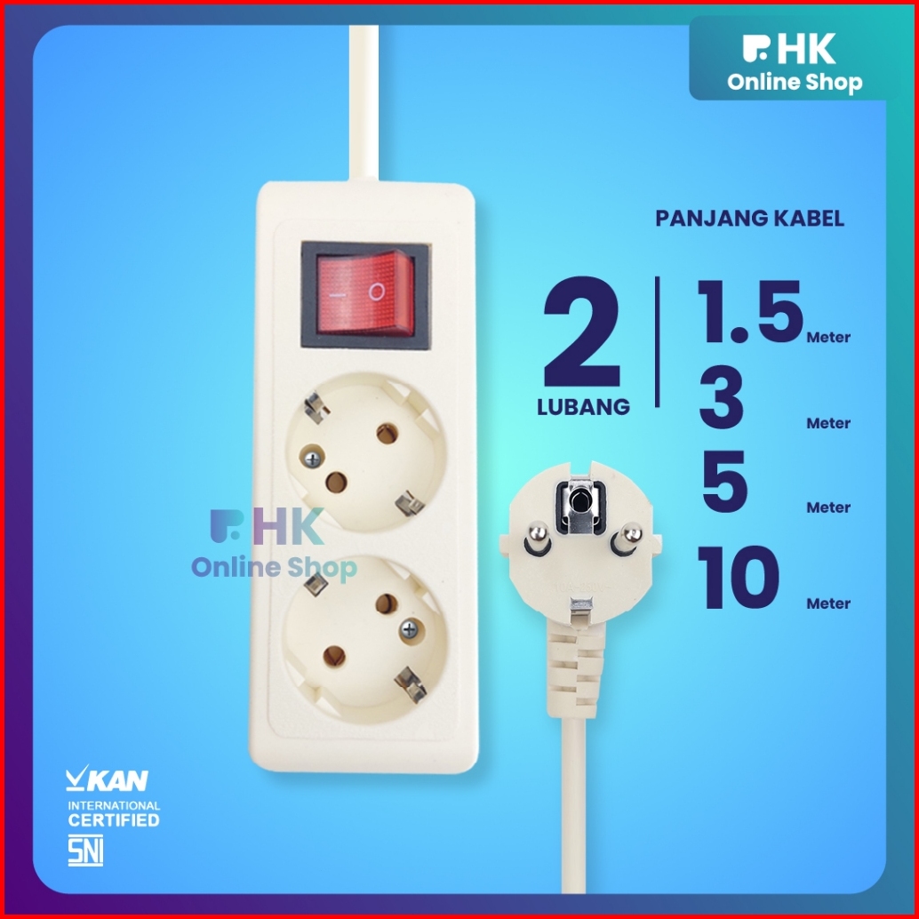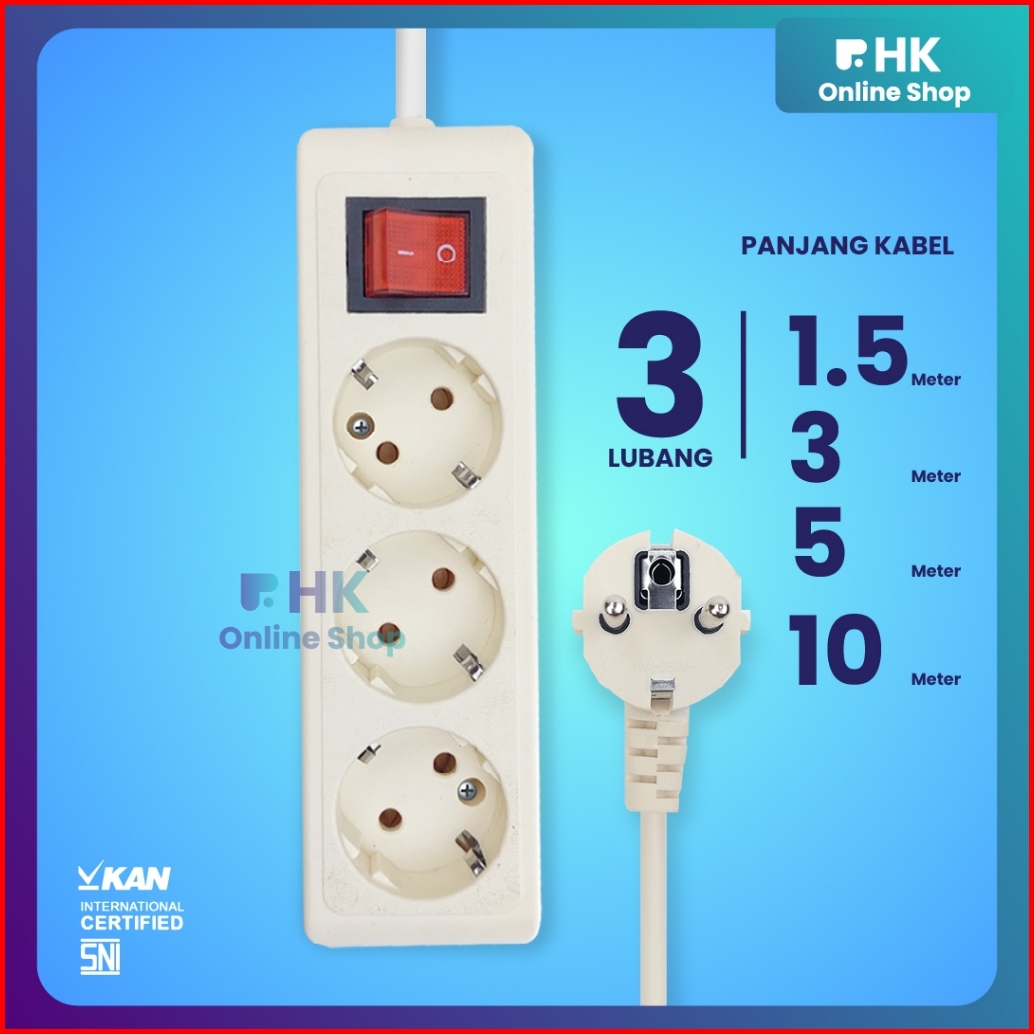Hk-stop Kontak Extension Kabel 2 3 4 5 Lubang - Kabel Roll 1.5 3 5 Meter Sni Kan - Original Tembaga Kuningan 10a