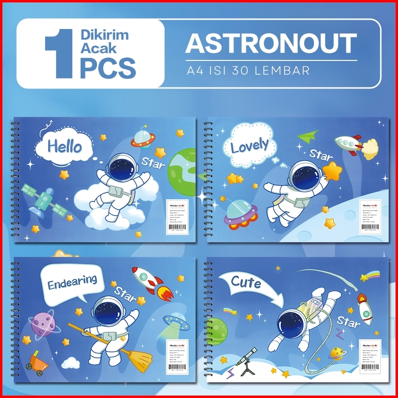 Aimilo - Buku Gambar Anak Sketchbook A4 Drawing Book Astronot Jilid Spiral Kertas Tebal 30 Lembar