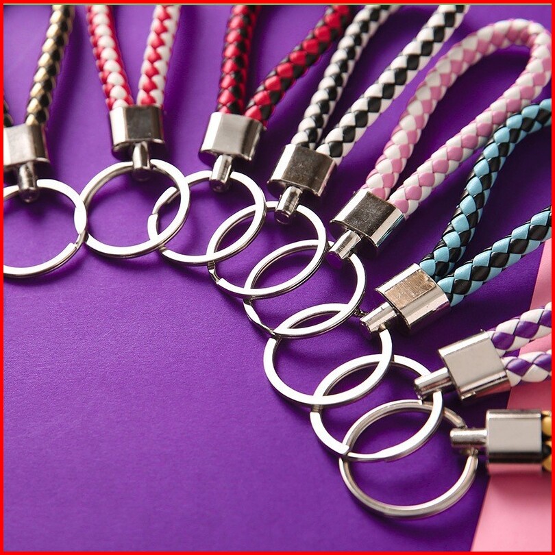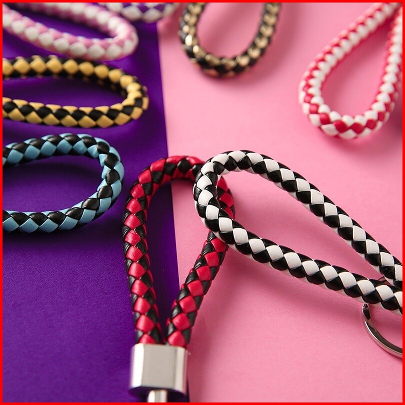 Hc Gantungan Kunci Tali Anyam Kepang Motor Mobil Ganci Kulit Rajut Braided Mini Tas Gantungan Kunci Motif Kepang Random