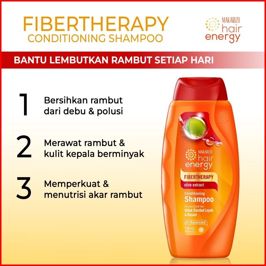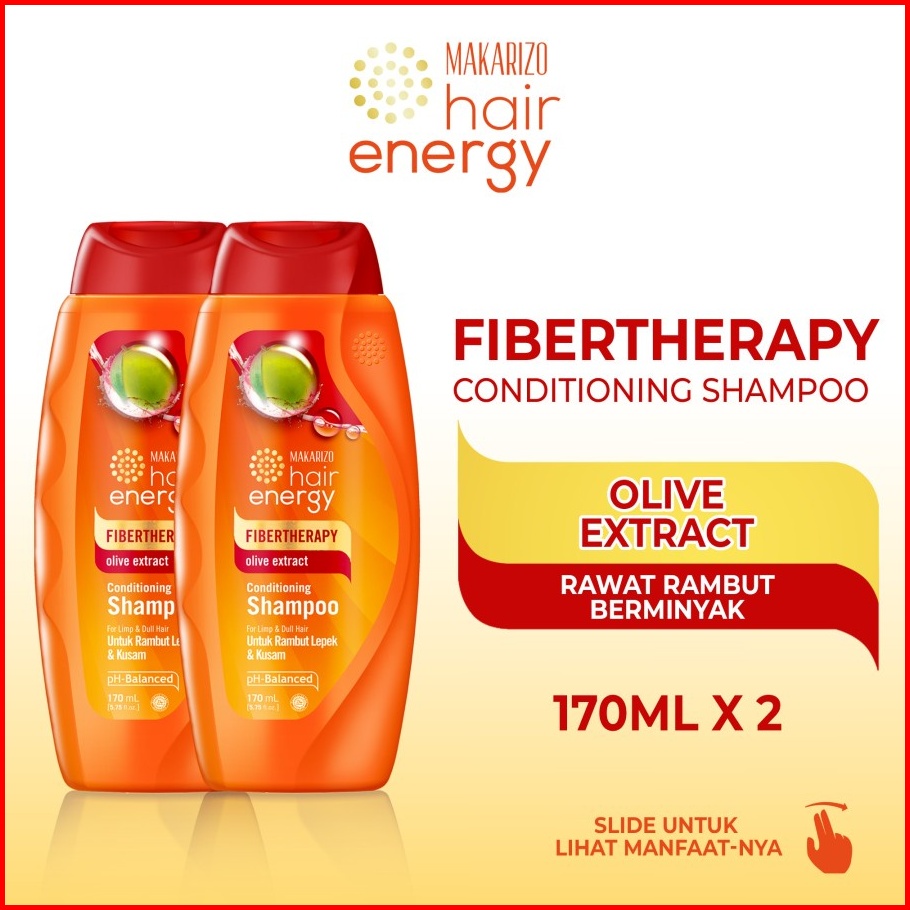 Paket Isi 2 - Makarizo Hair Energy Fibertherapy Conditioning Shampoo Olive 170 Ml