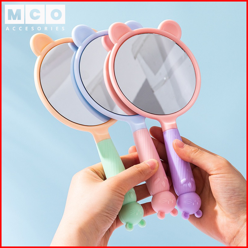 Cermin Kaca Genggam Kaca Gagang Bulat 22cm Cermin Portable Mco Ss76