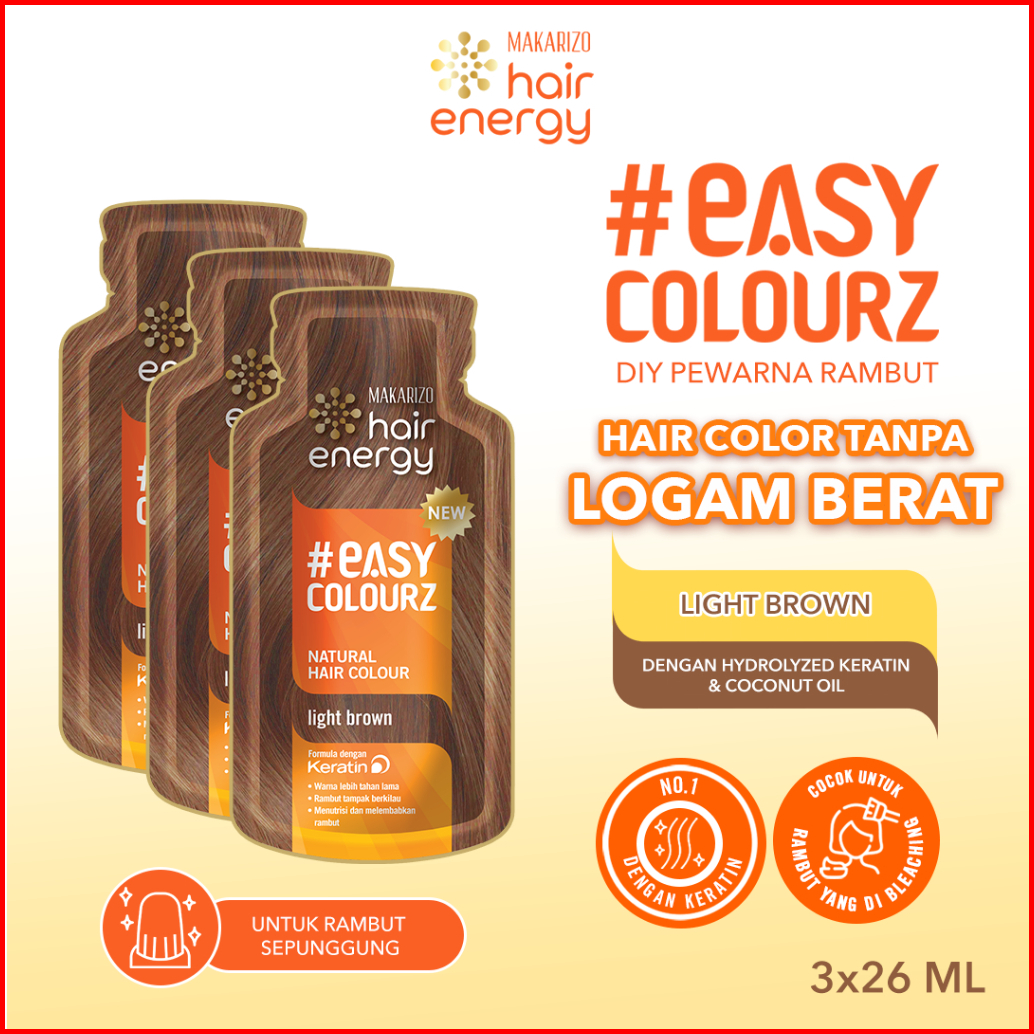 Bundle Isi 3 - Makarizo Hair Energy Easy Colourz 26 Ml - Light Brown - Hair Color - Pewarna Rambut