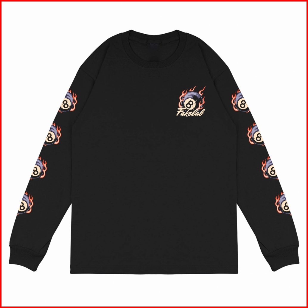 Fakelab Long Sleeve Eight Ball Black Lengan Panjang Ls Hitam