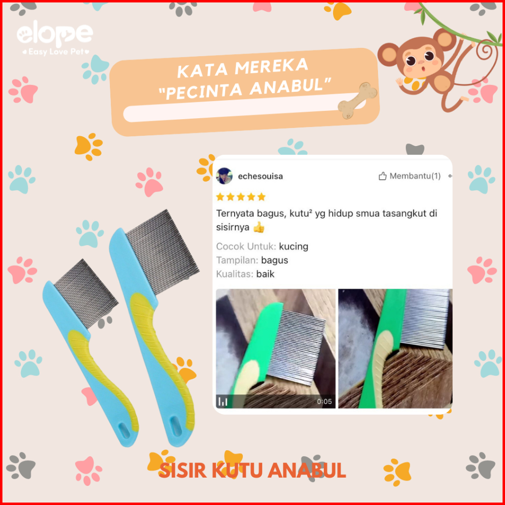 Elope Serit Sisir Kutu Rambut Hewan Anjing Kucing Anabul Premium