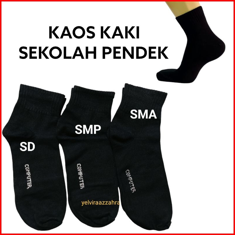 6 Pasang Kaos Kaki Sekolah Hitam Polos Putih Telapak Hitam Sd Smp Sma