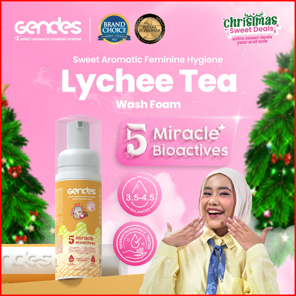 Gendes Feminine Hygiene Wash Foam Lychee Tea 5 Miracle Bioaktives - Perawatan Area Kewanitaan