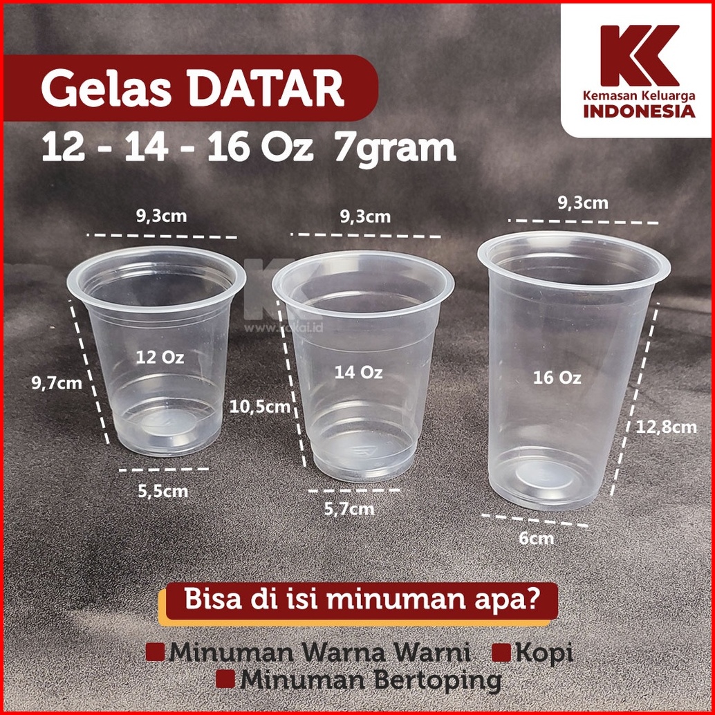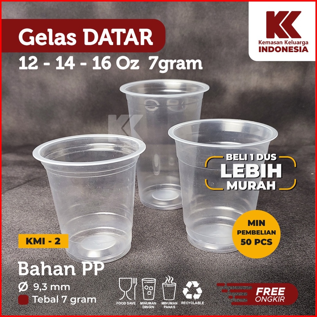 Gelas Plastik Datar Oval 12 14 16 Oz Gelas Boba 7 Gr 50 Pcs