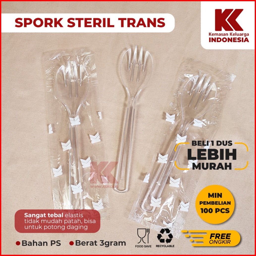 Spork Steril Sendok 2in1 Sendok Garpu Steril 100pcs