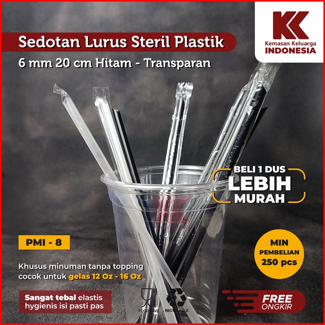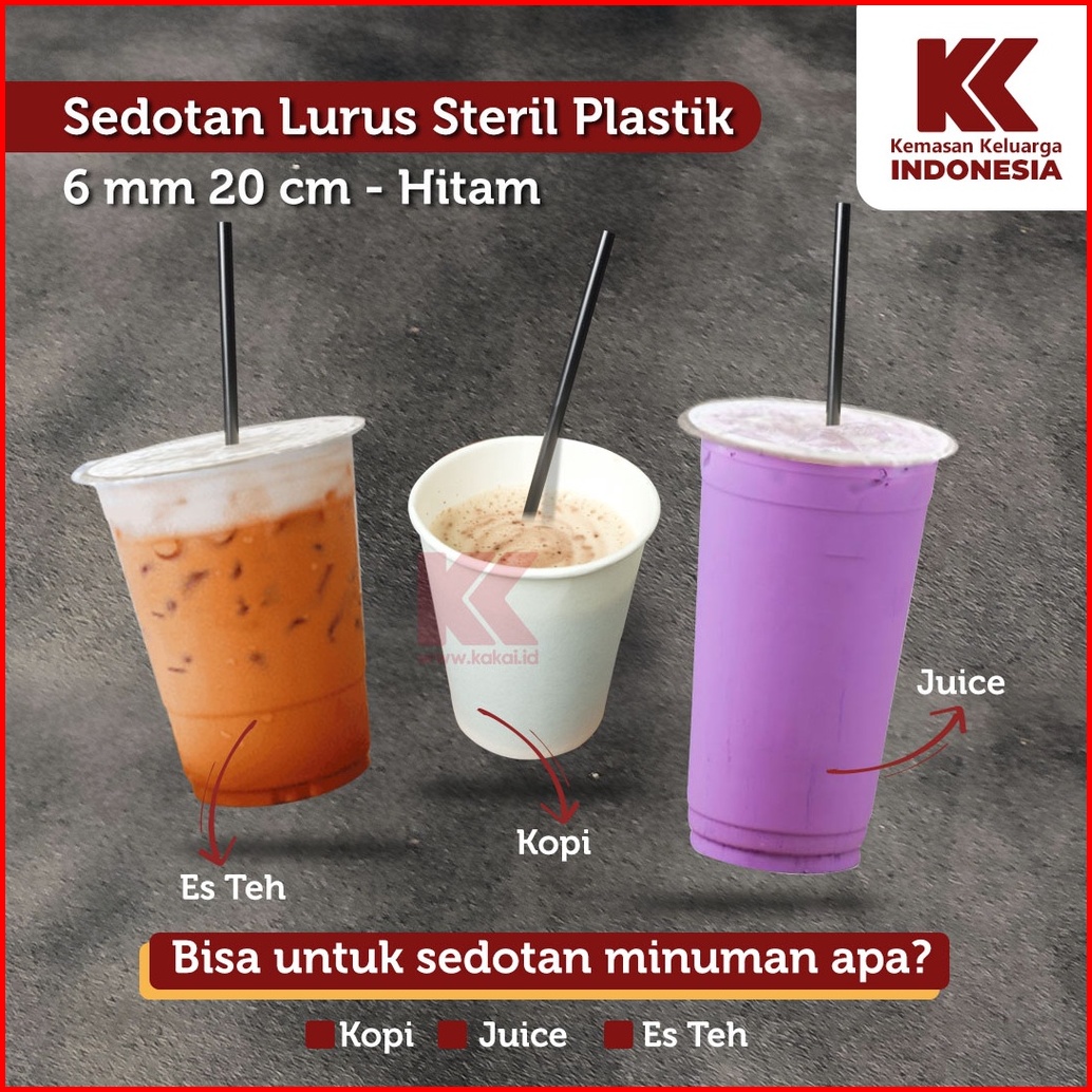 Sedotan Kopi Steril Sedotan Hitam Steril Runcing 6mm 20 Cm 250pcs