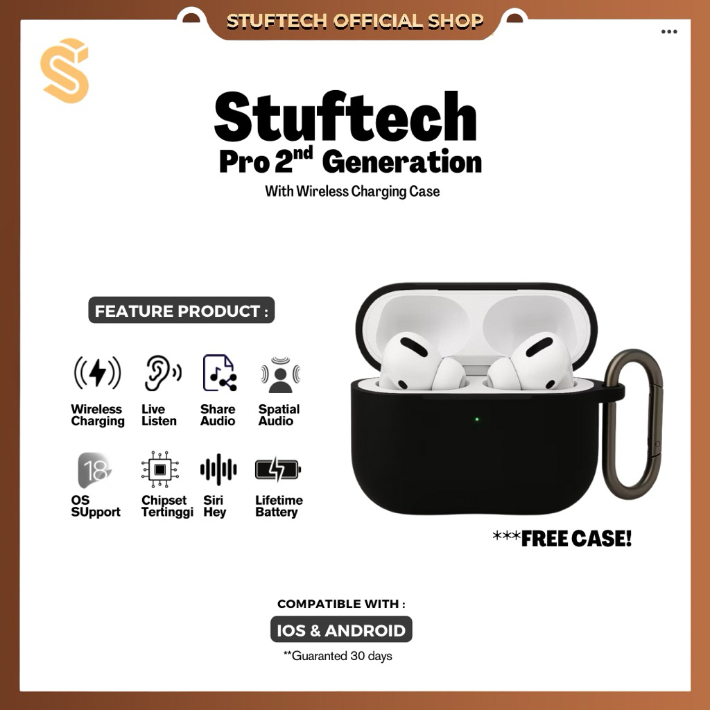 Stuftech Pro 2 Anc | Tws Pro 2 Earphone Bluetooth Headset Iphone | Free Premium Silicone Softcase With Hook For Air Pro