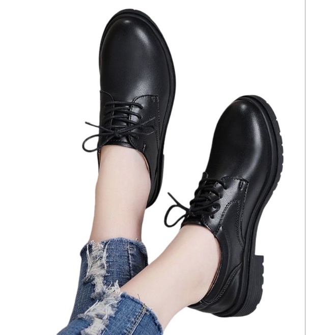 Sepatu Docmart Wanita Kasual Hitam / Sepatu Tali Wanita Terbaru / Sepatu Kulit Oxford Wanita O Kekinian / Sepatu Fl