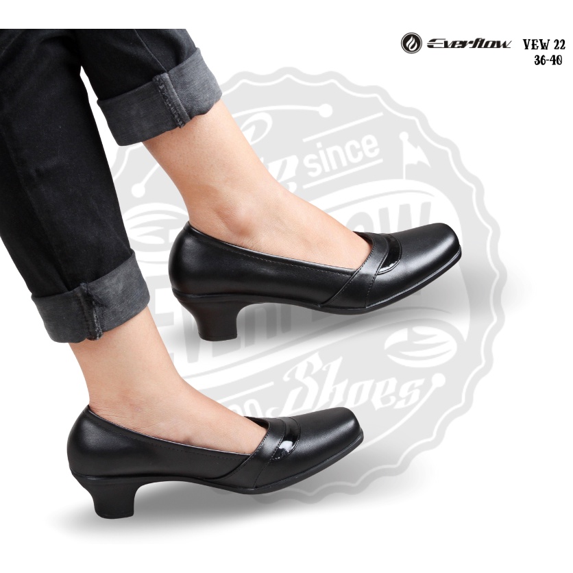 EVERFLOW - VEW22 Sepatu Pantofel Kantor Dinas PNS Formal Wanita 4cm kulit sintetis