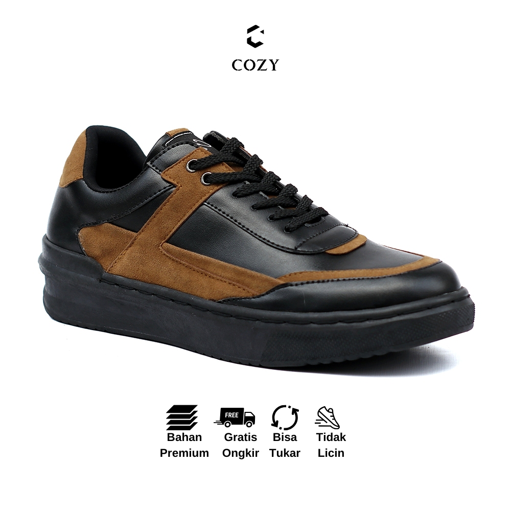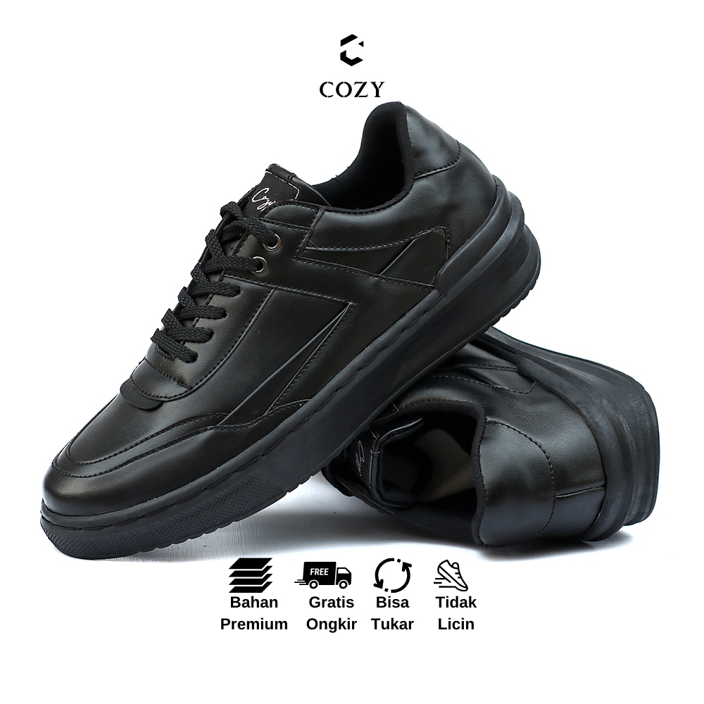CZY Sevill Black Sepatu Casual Formal Pria Hitam Pantofel Kerja Kantor Kuliah Sekolah