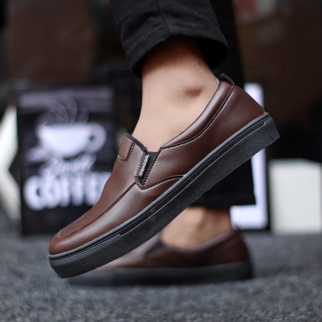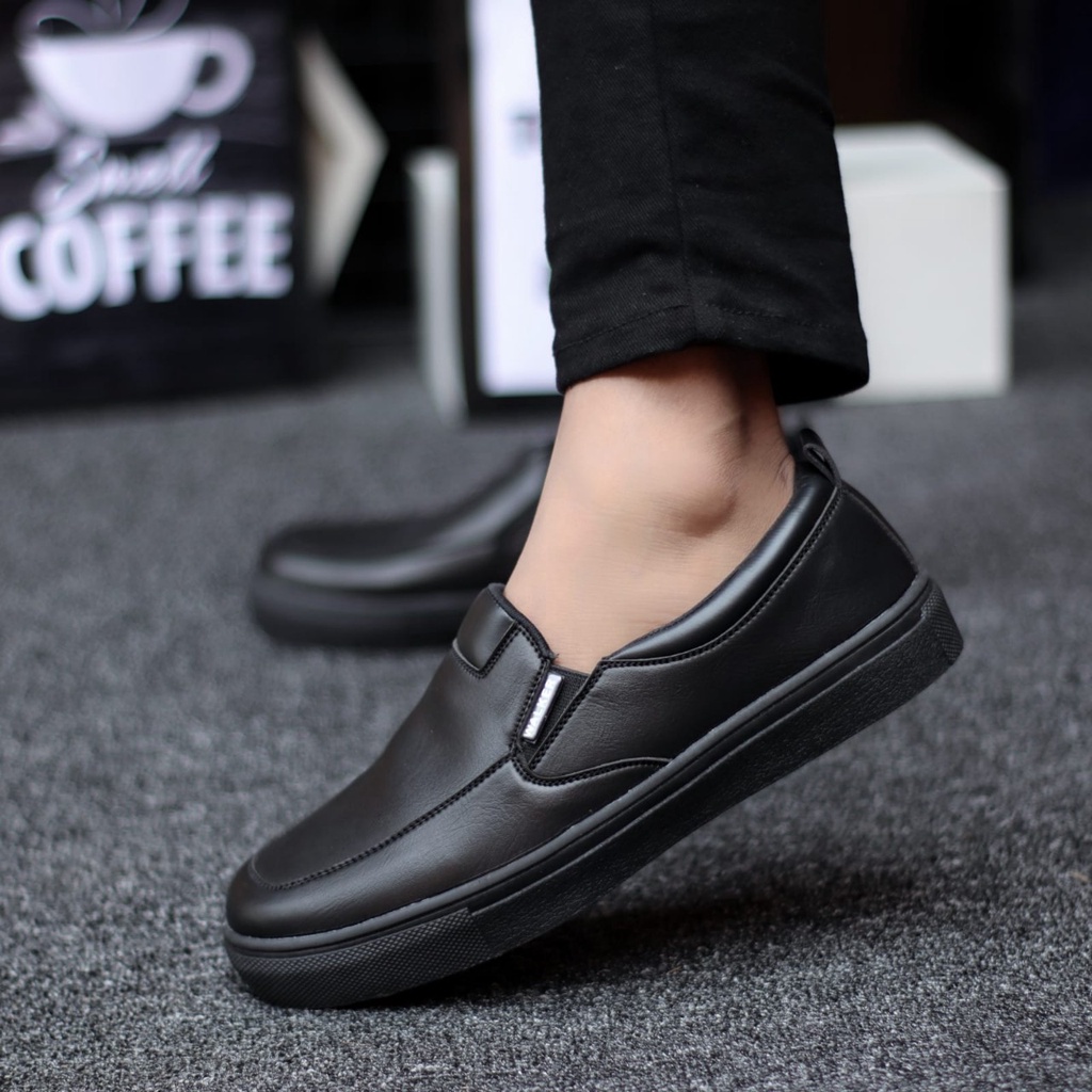 MOLK sepatu formal pria hitam pantofel casual kerja kantor kuliah kulit sintetik