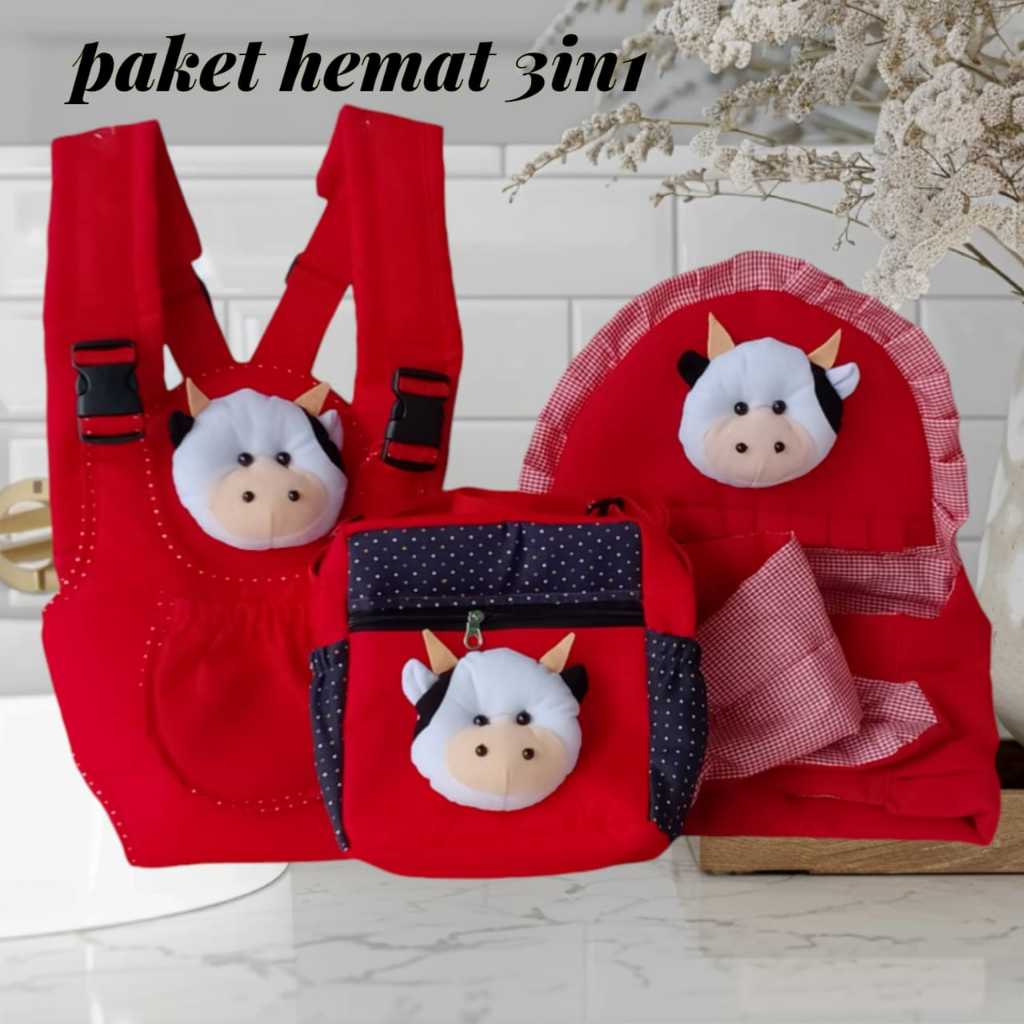 Paket-Hemat-3in1-Tas-Bayi-dan-Gendongan-Bayi-Depan-Ransel-Gendongan-Samping-Topi