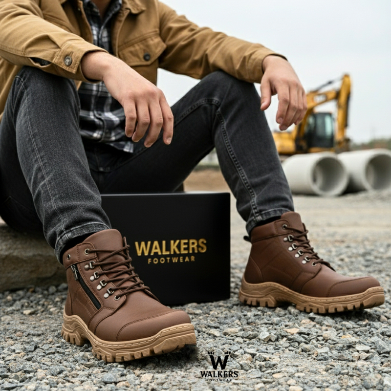 Sepatu Safety Pria Boots Safety Ujung Besi - Shoes Safety Basic - Sepatu Boot Outdoor Tracking - Walkers Official