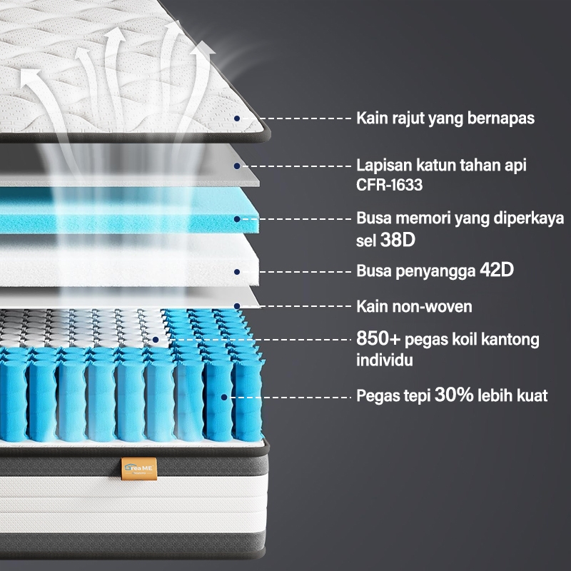 90X200X26CM, 120X200X26CM, 140X200X26CM, 160X200X26CM, 180X200X26CM, Garansi Produk