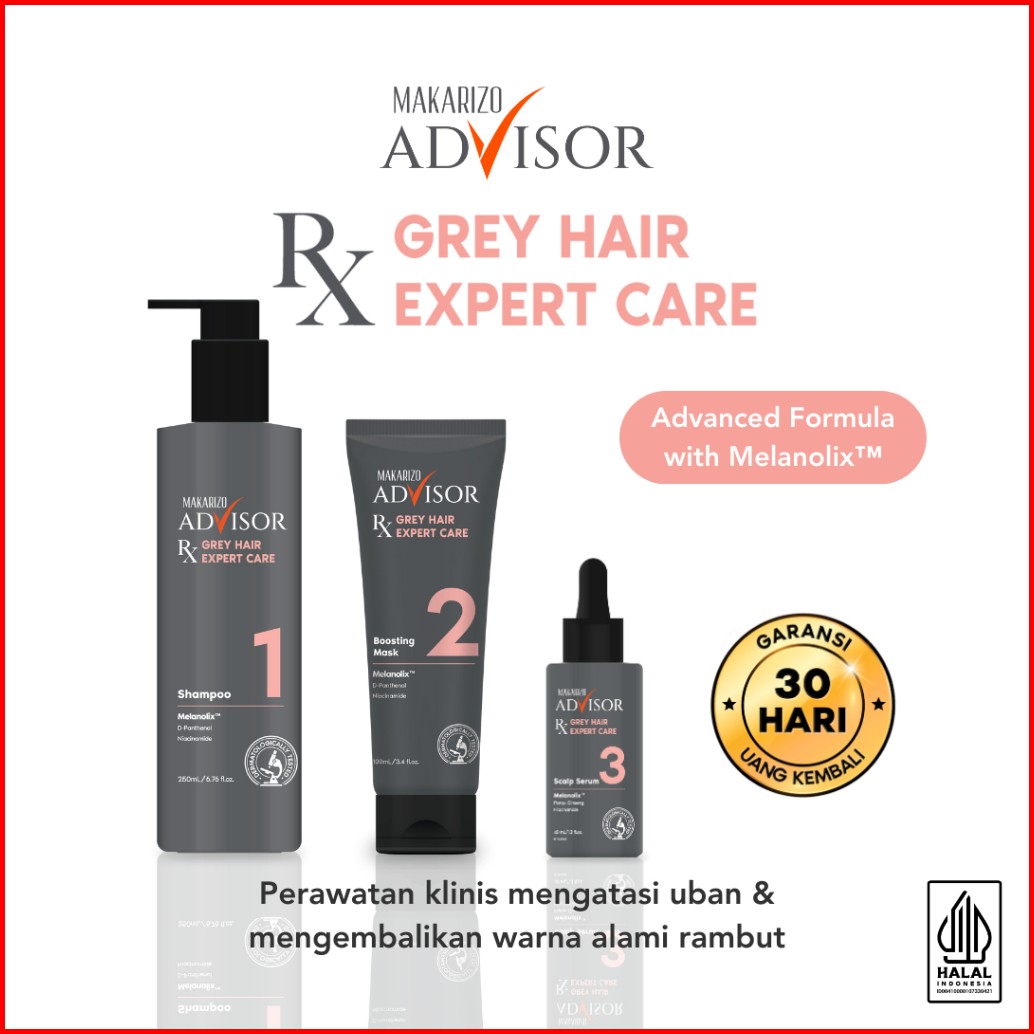 Makarizo Advisor Rx Grey Hair Expert Care Series - Atasi Rambut Uban Repigmentasi Penghitam Uban Non Sls