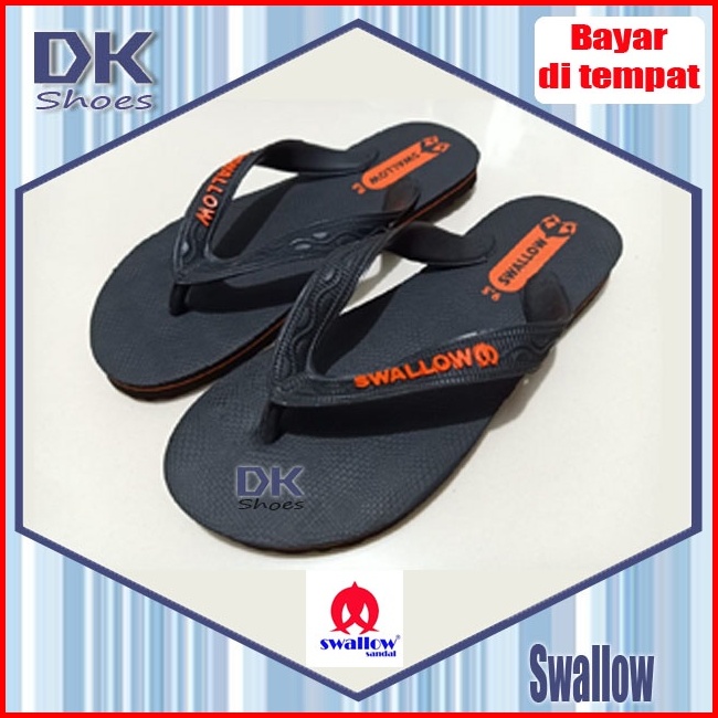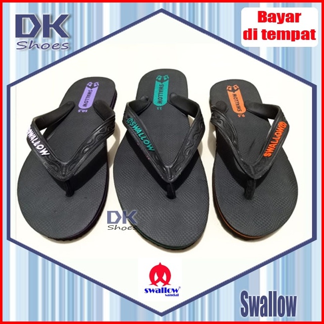 Swallow Sandal Hitam Jepit Karet Pria Wanita Sandal Rumah 9.5 - 11 Sandal Wudhu Sandal Karet