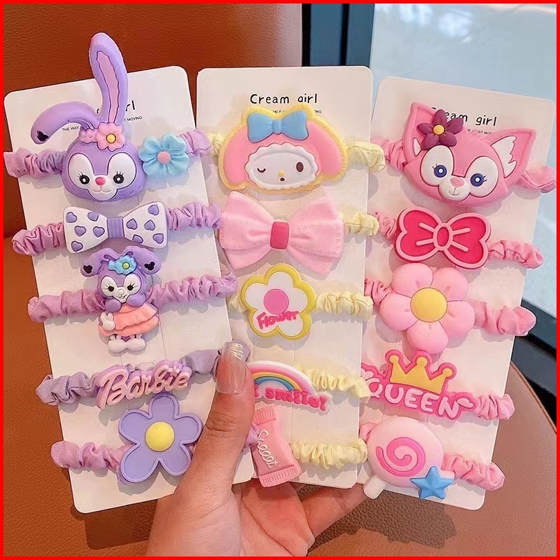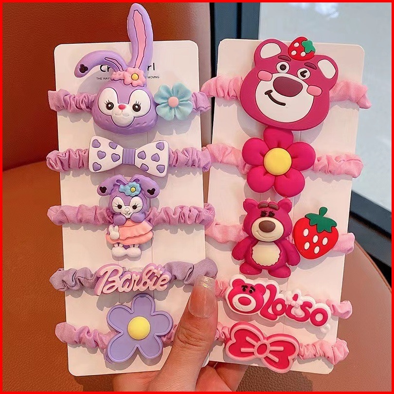 Ikat Rambut Srunchie Karakter Kartun Lucu Karet Rambut Set Isi 5 Aksesoris Rambut Anak Mco Ar242