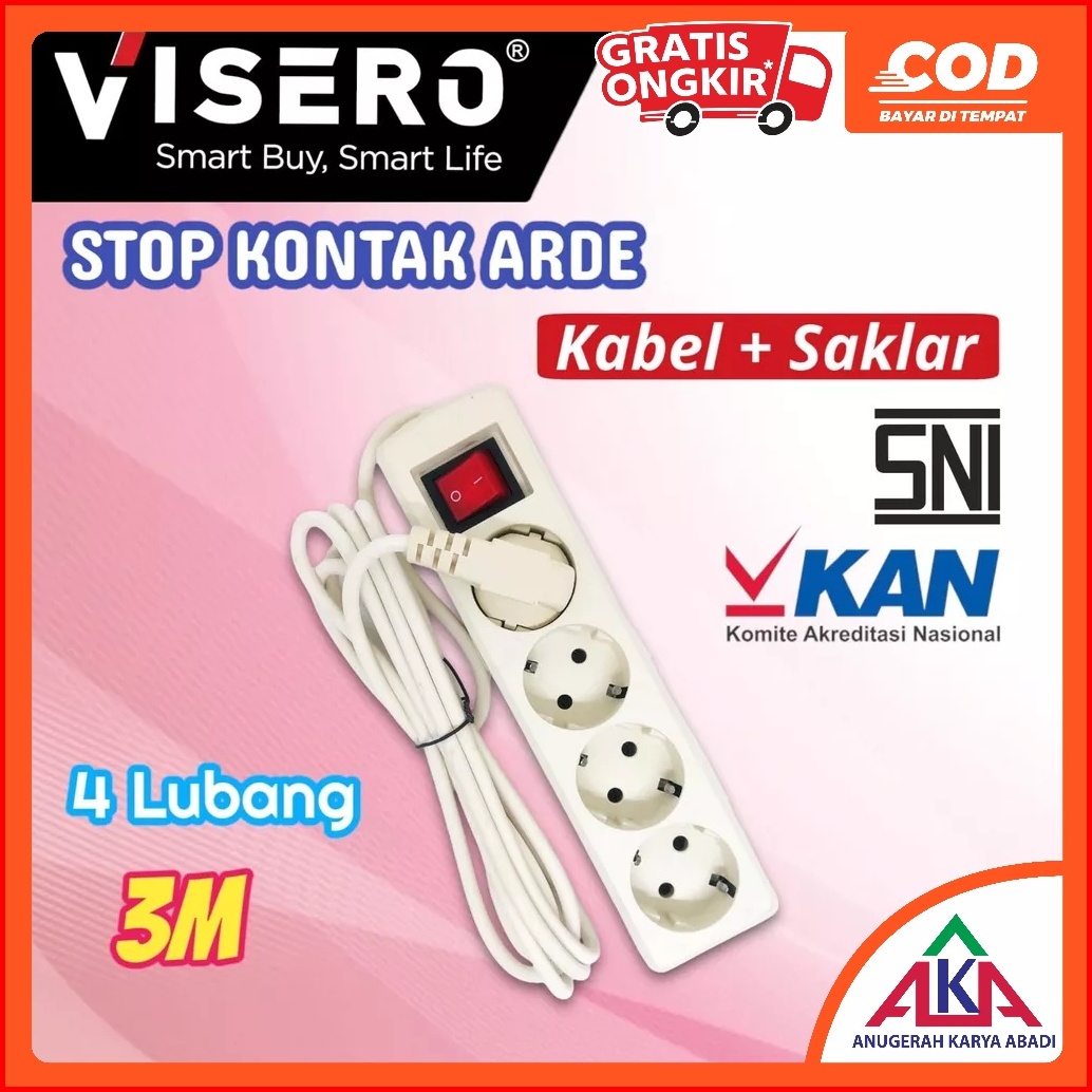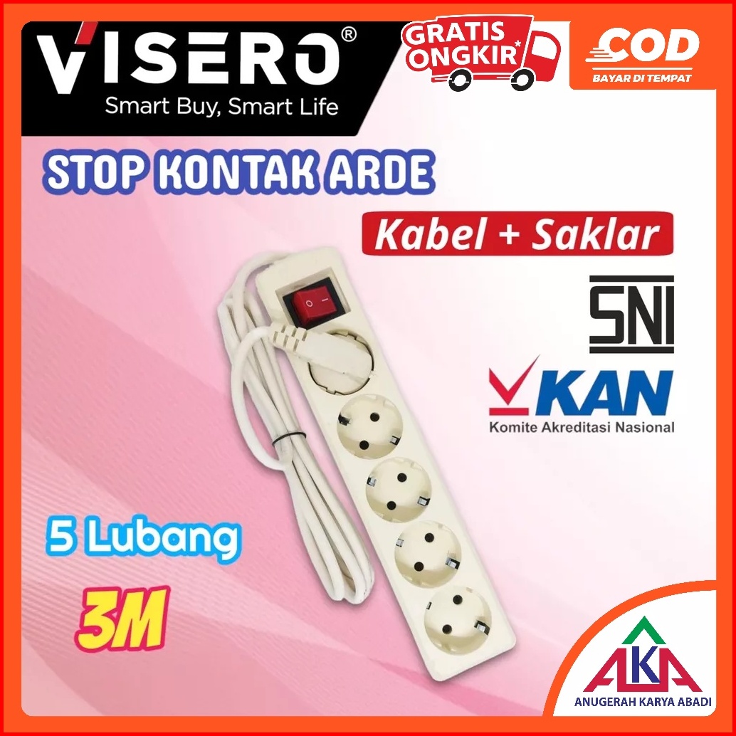 Visero Stop Kontak Arde Kabel 3m 2 3 4 5 Lubang Tombol Lampu Sni