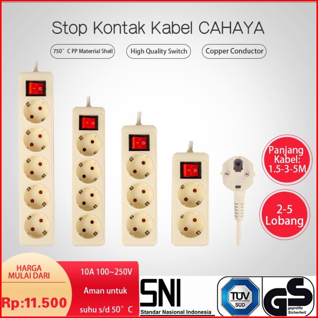 Stop Kontak Kabel 2 3 4 5 Lubang 1.5 3 5 Meter Sni