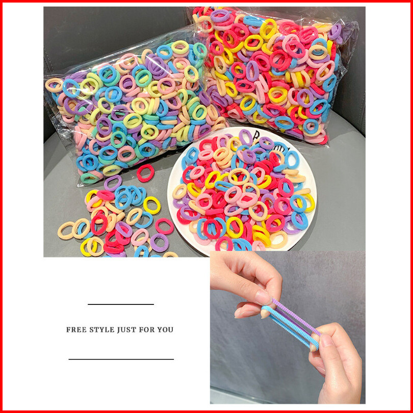 Set Ikat Rambut Anak Isi 100 Karet Donat Mini Warna Warni Mco Ar236