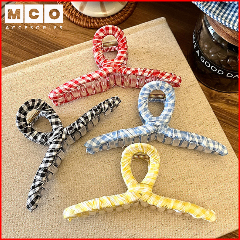 Jepit Jedai Rambut Simpul Motif Kotak Fashion Hairclaw Aksesoris Rambut Wanita Mco Ar429