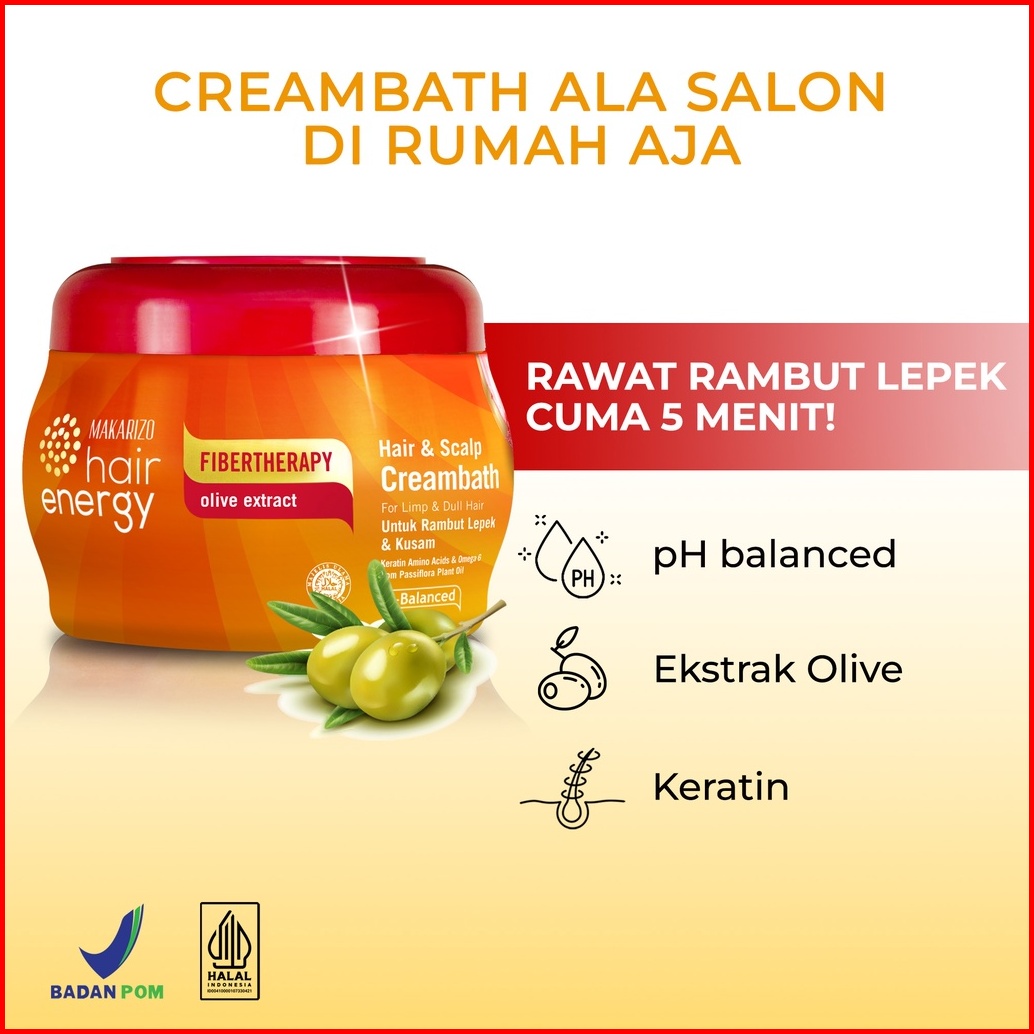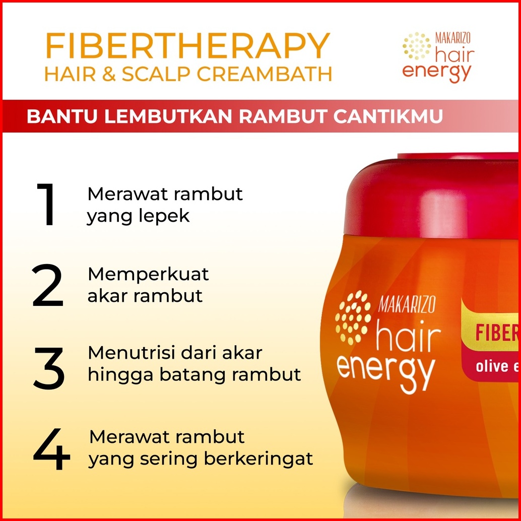 Paket Isi 2 - Makarizo Hair Energy Fibertherapy Hair Scalp Creambath Olive 500 Ml