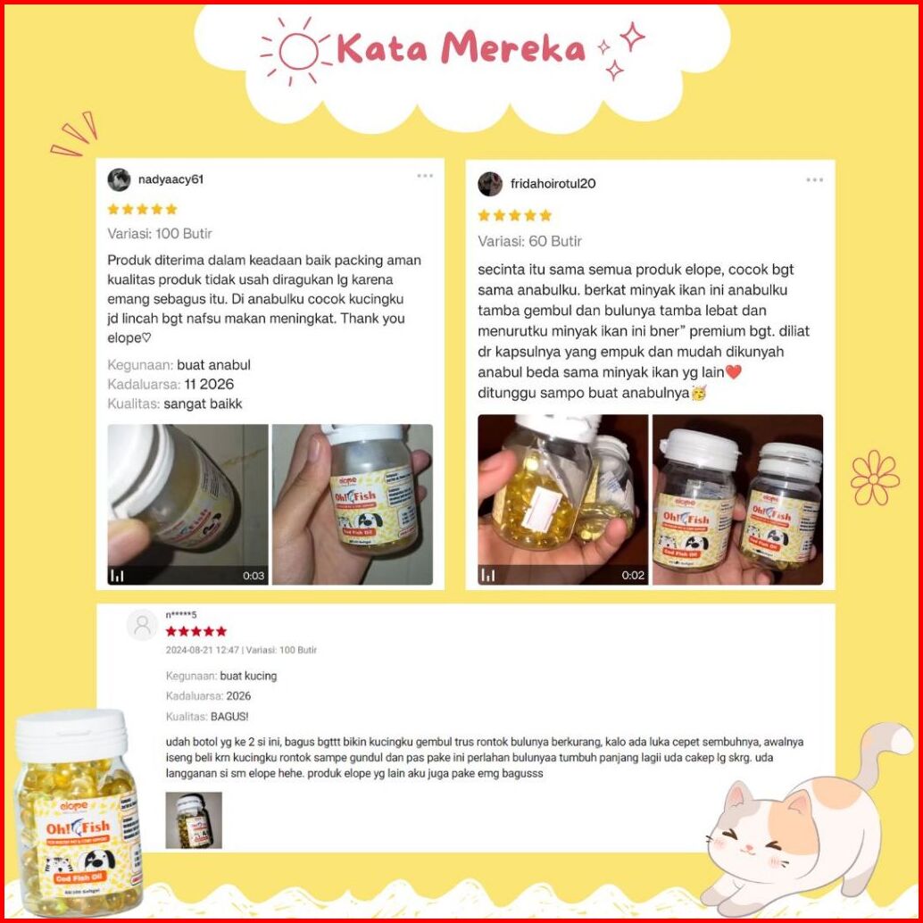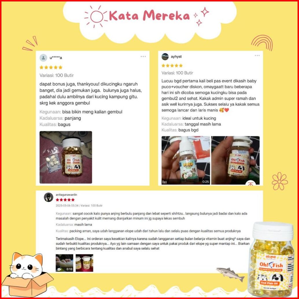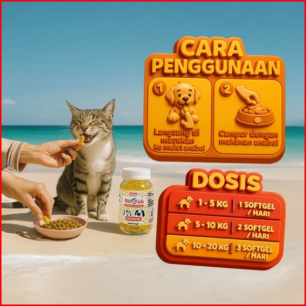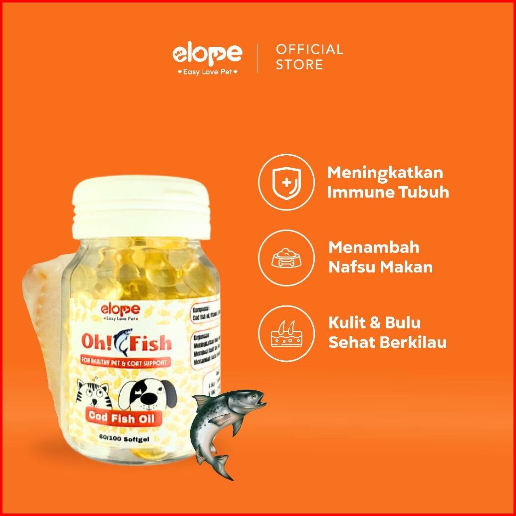 Elope Oh Fish Oil Minyak Ikan Vitamin Bulu Hewan Kucing Anjing 100 60 Butir