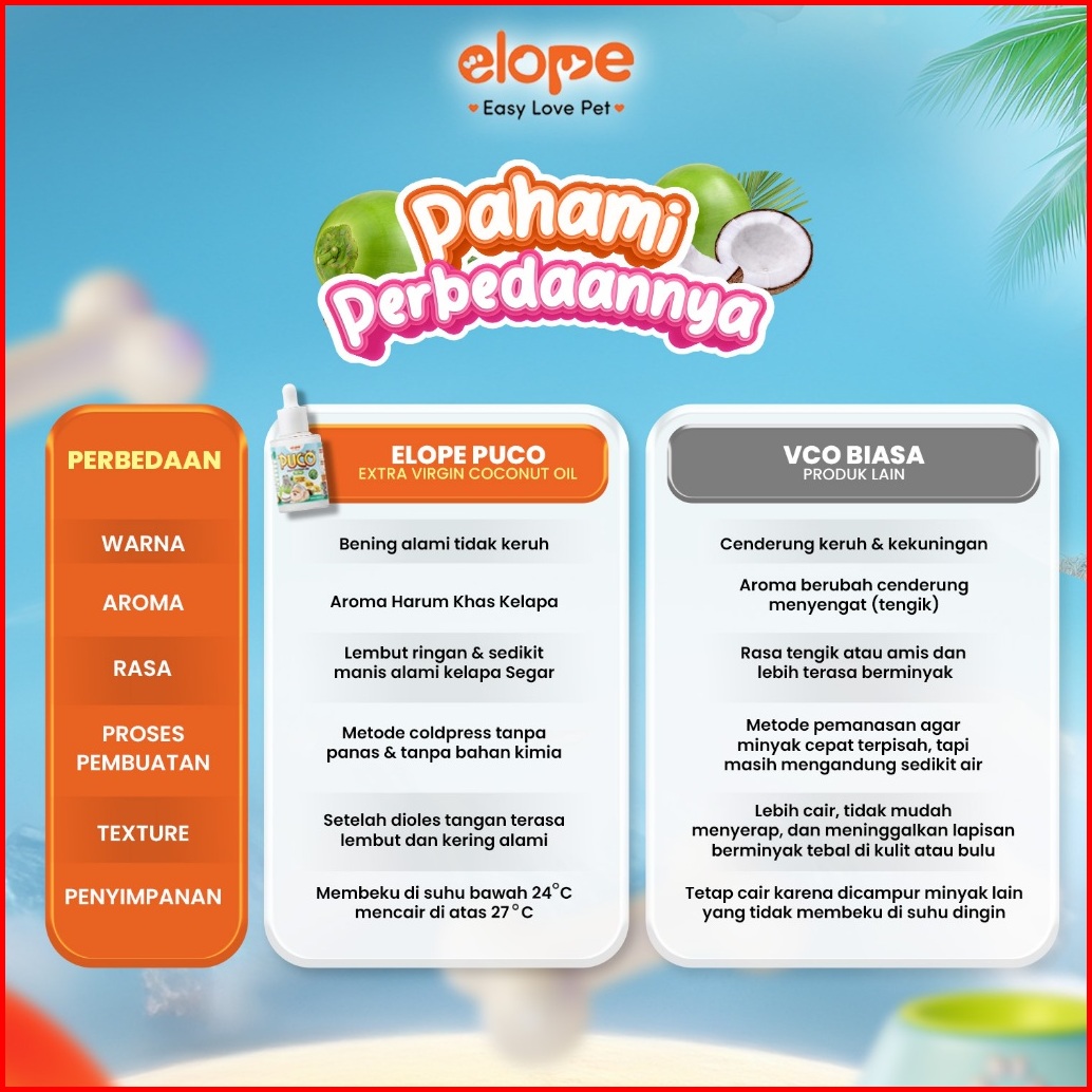 Elope Puco Evco Extra Virgin Coconut Oil Minyak Kucing Anjing Jamur Scabies Hairball Bulu Kulit