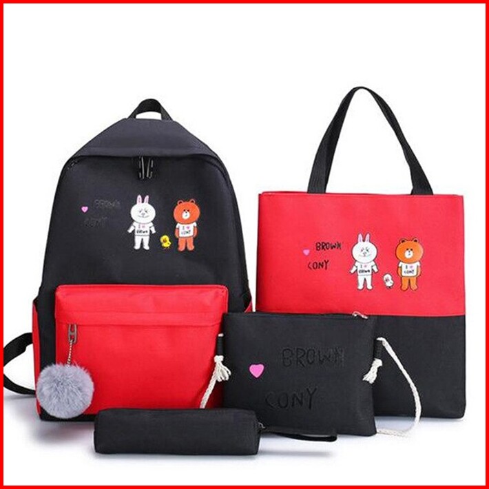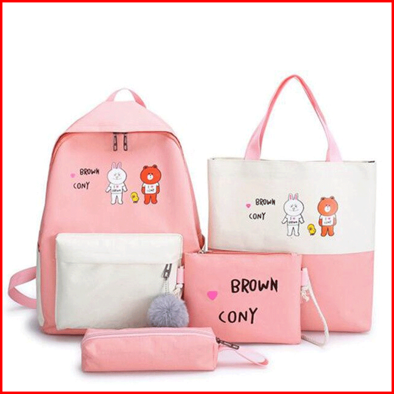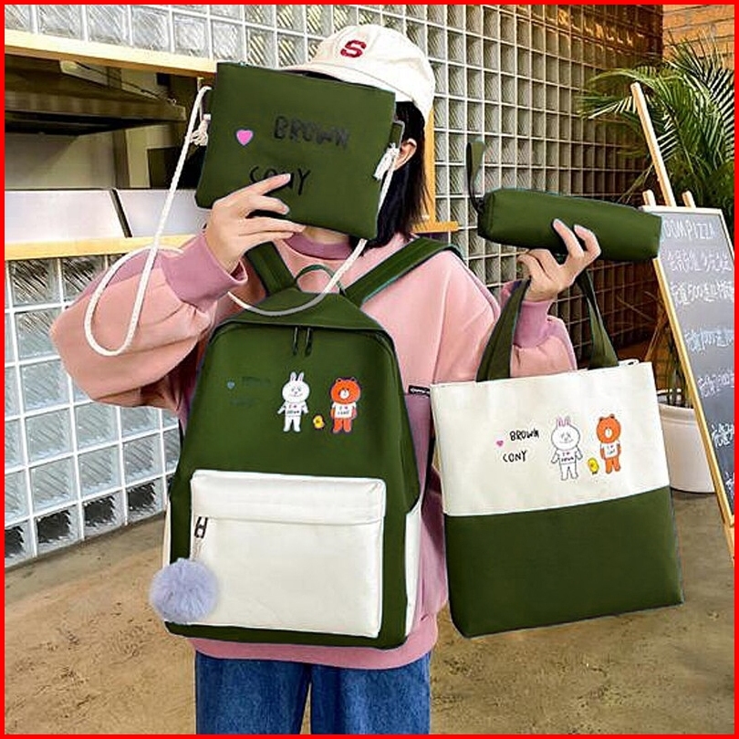Tas Sekolah Motif Kartun Jepang Backpack Fashion Wanita Pria Kpop Bts Free Pompom