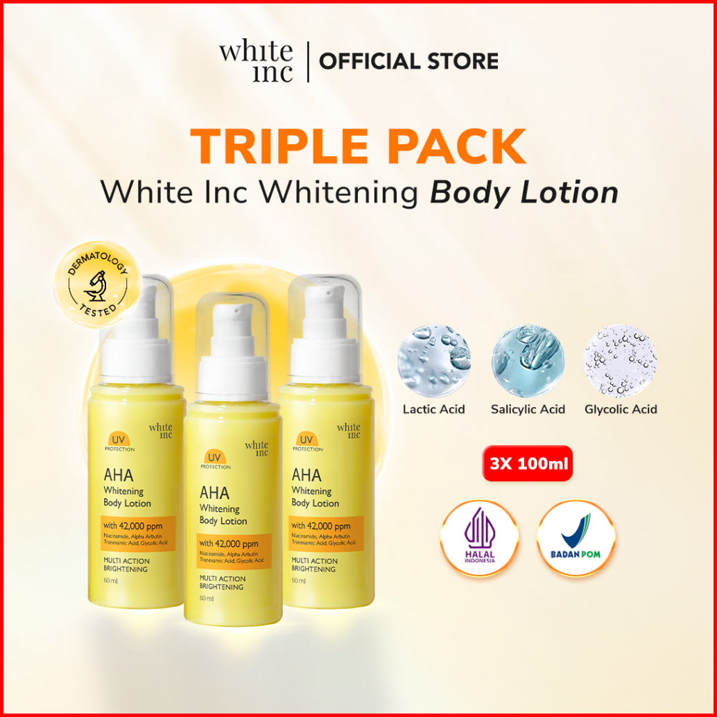 Package 3 White Inc Aha Body Lotion To Whitening Moisturising Hand Body Lotion Pencerah Mencerahkan Melembabkan Sebagai