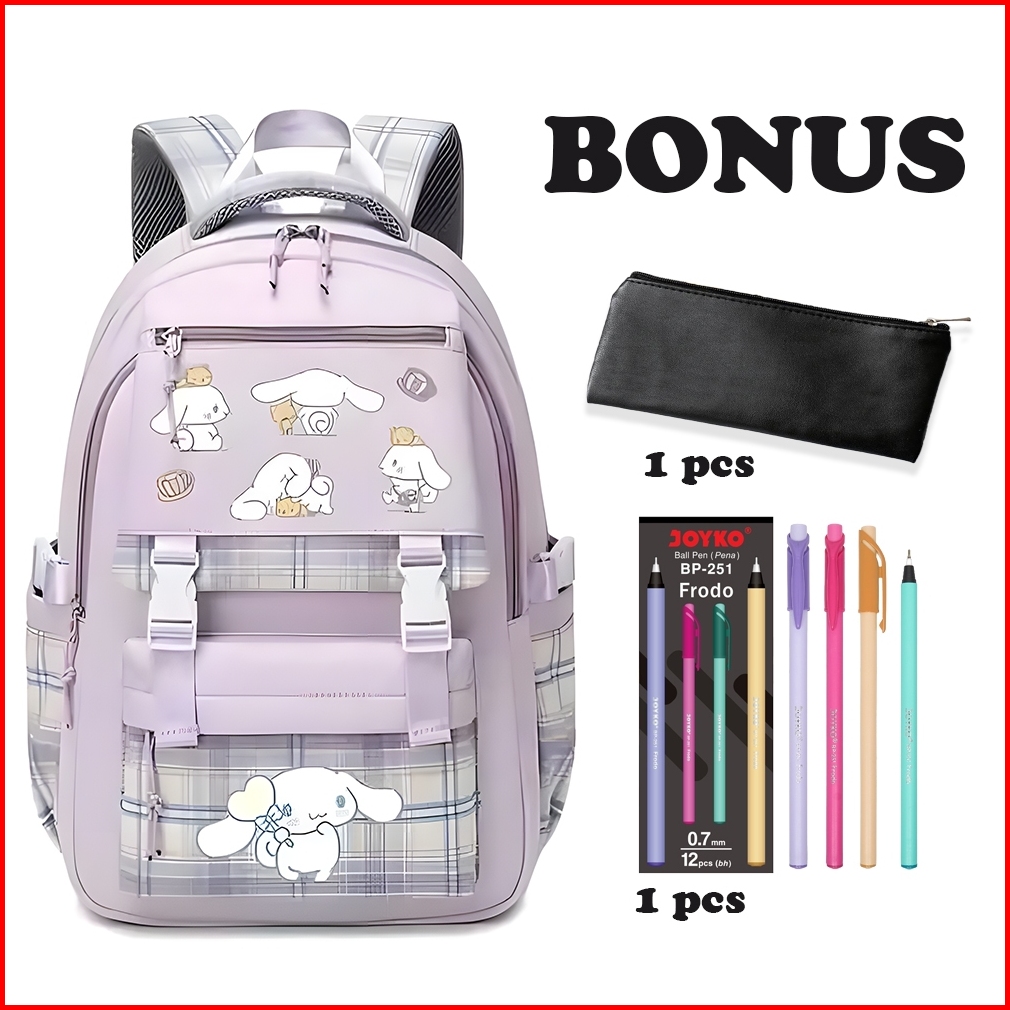 Bonus Tempat Pensil Pulpen Kurumi Motif Aesthetic Tas Ransel Violet Mini Korea Style Backpack