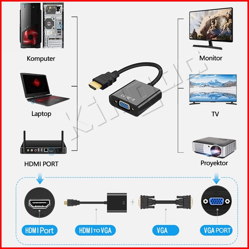 Converter Hdmi To Vga Kabel Hdmi Ke Vga Male To Female Konektor For Pc Lcd Projector