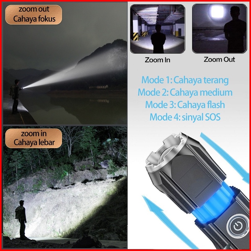 Senter Led Zoom Daya Tinggi Usb Charge 36w Cob Flasslight Senter Police Led 18650 Senter Led