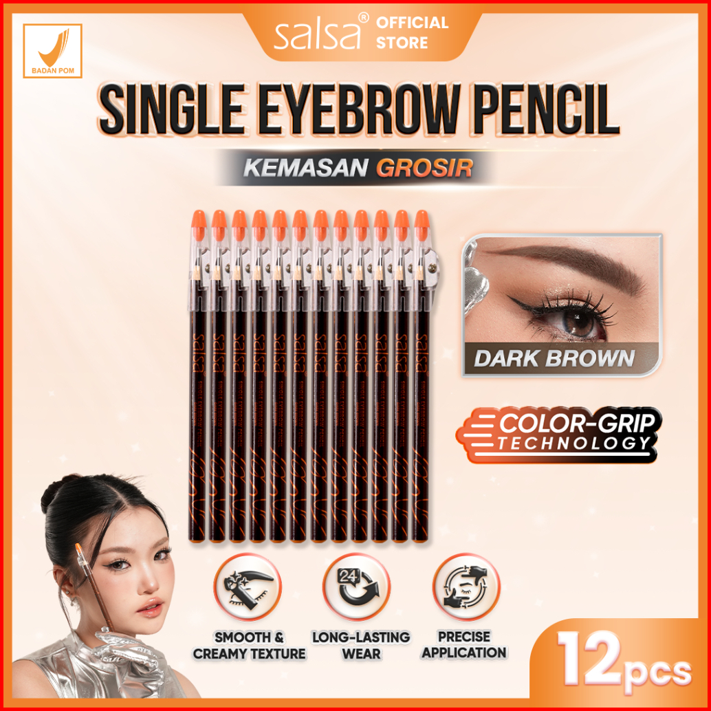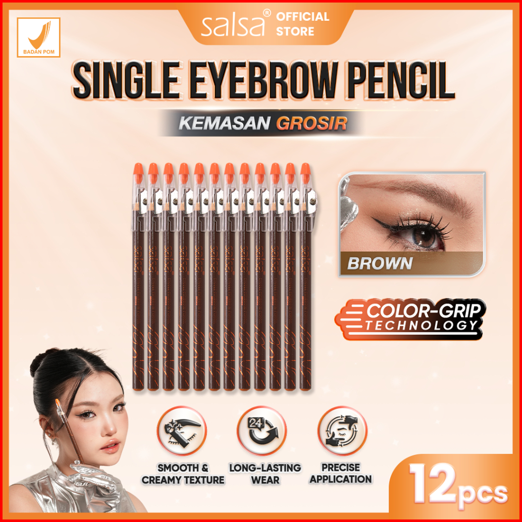 Grosir 12pcs Salsa Single Eyebrow Pencil - Pensil Alis Lembut Tahan Lama Natural Look Eyebrow Pencil Waterproof Long Las